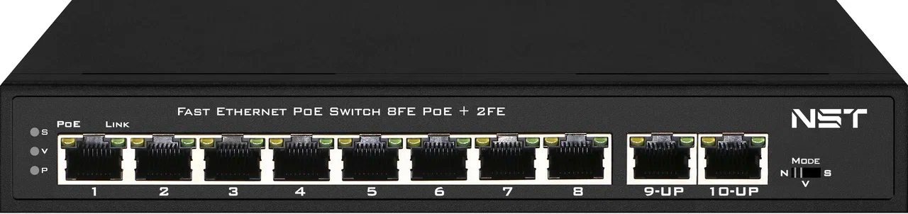 Коммутатор Неуправляемый NST - SW-8F2F-P, Layer 1, 8-PoE, 10-10/100Mb, настольный, NS-SW-8F2F-P