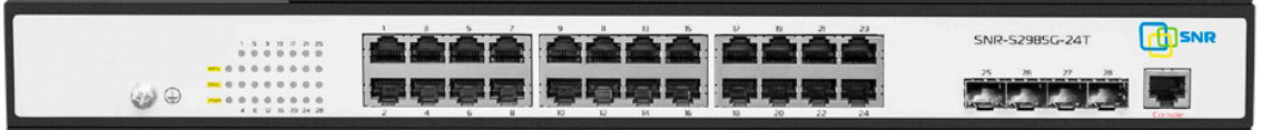 Коммутатор Управляемый SNR - S2985G-24T-DC, Layer 2, 24-1GbE, 4-SFP, ROM-32MB, RAM-128MB, SNMP, Web, в стойку, SNR-S2985G-24T-DC