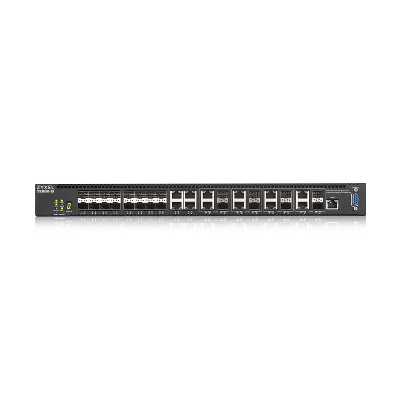 Коммутатор Управляемый ZyXEL - XS3800-28, Layer 2 Plus, 4-10GbE, 16-SFP+, 8-combo-10GbE, ROM-64MB, RAM-8192MB, SNMP, telnet, Web, CLI, в стойку, чёрный, XS3800-28-ZZ0101F