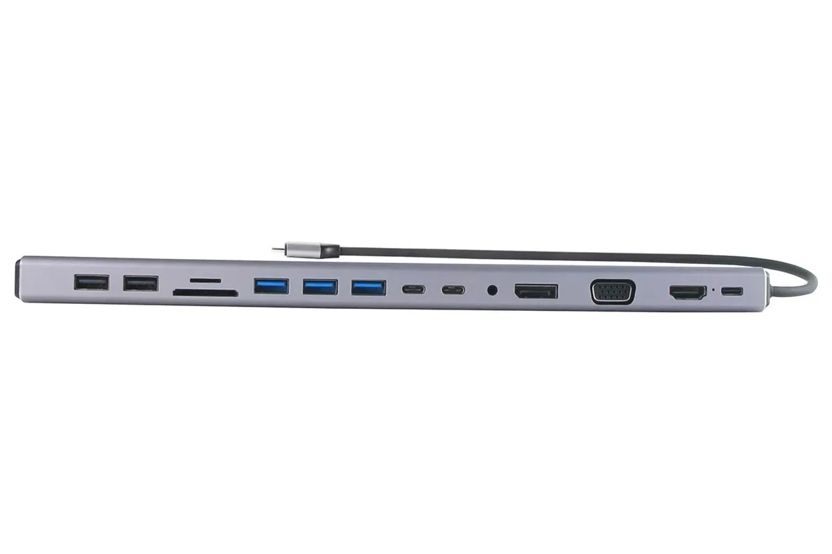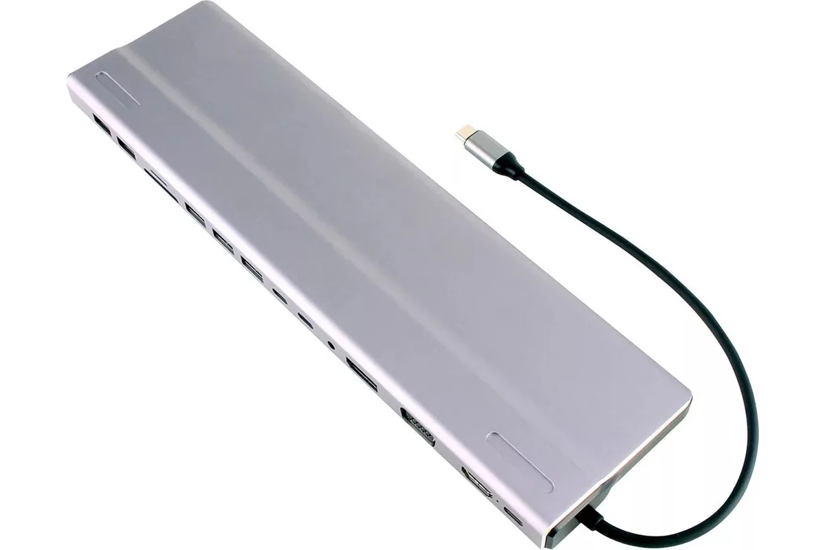 Выбрать товарыПорт-репликатор vcom - CU4703, USB Type C, VGA, 1-DP, 1-HDMI, 1-RJ45, 2-USB2.0 Type A, 3-USB3.0 Type A, 1-audio, цвет серый, CU4703