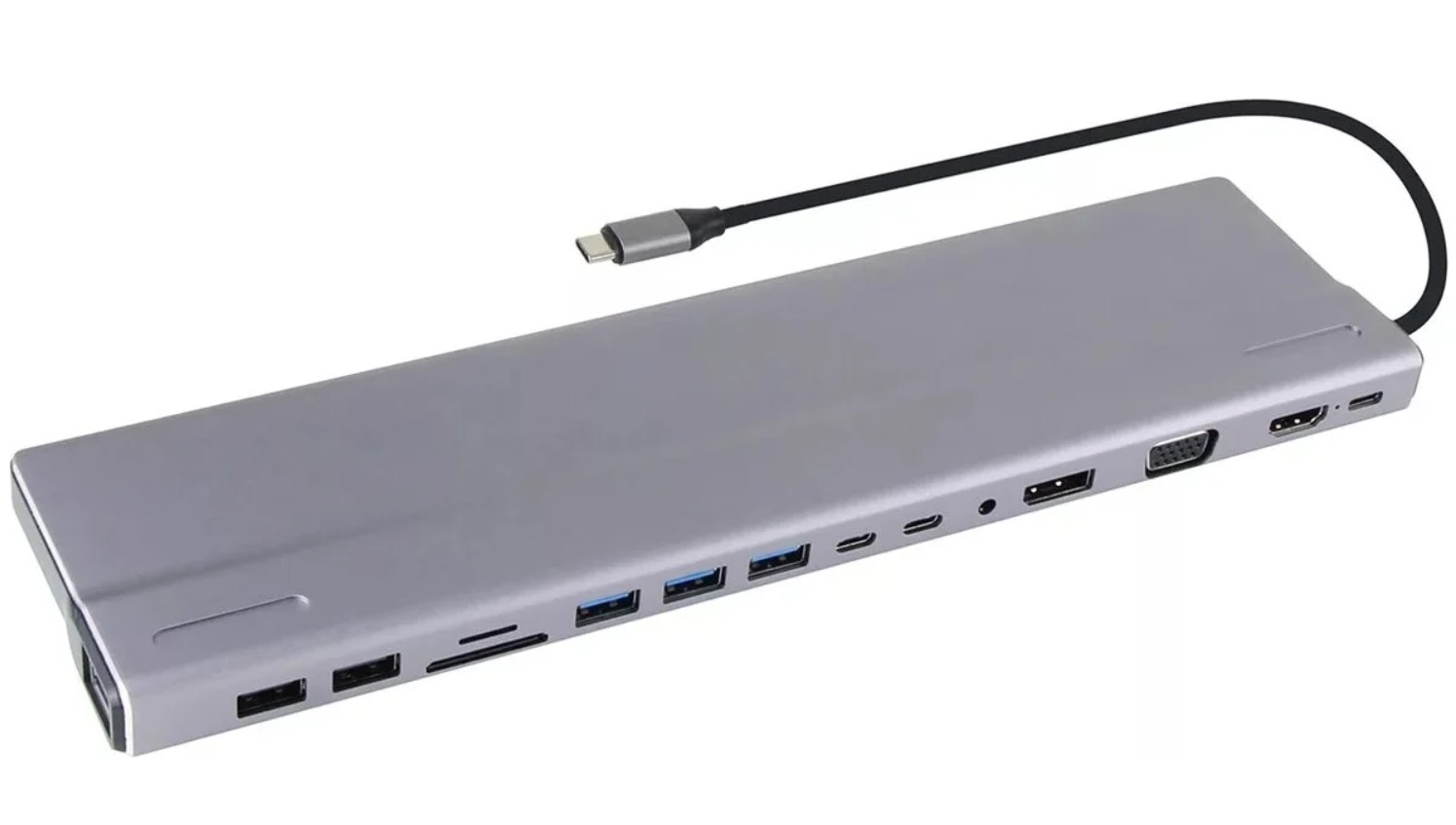 Порт-репликатор vcom - CU4703, USB Type C, VGA, 1-DP, 1-HDMI, 1-RJ45, 2-USB2.0 Type A, 3-USB3.0 Type A, 1-audio, цвет серый, CU4703