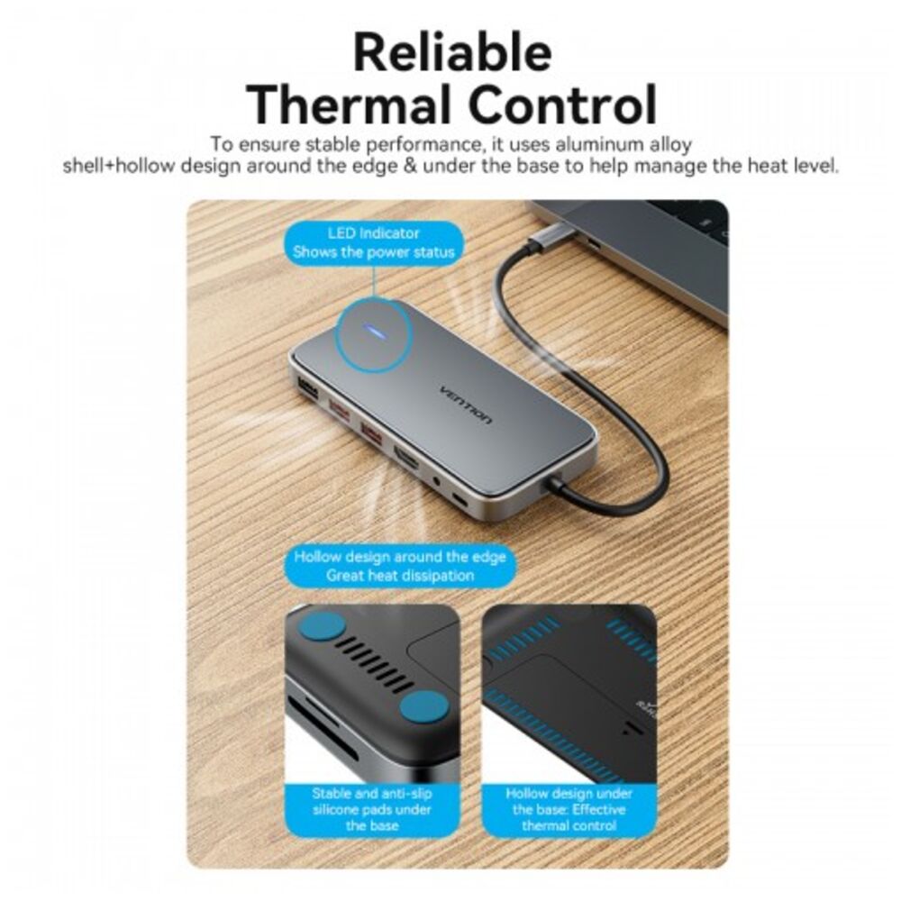 Порт-репликатор Vention - TPYBB, USB Type C, 1-HDMI, 1-USB2.0 Type A, PD 100 Вт, 1-audio, TPYBB