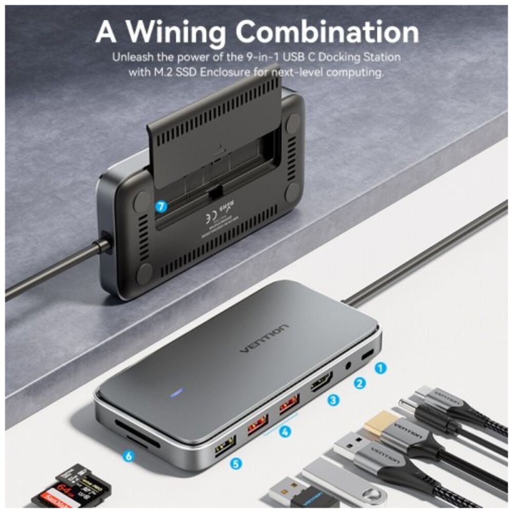 Выбрать товарыПорт-репликатор Vention - TPYBB, USB Type C, 1-HDMI, 1-USB2.0 Type A, PD 100 Вт, 1-audio, TPYBB