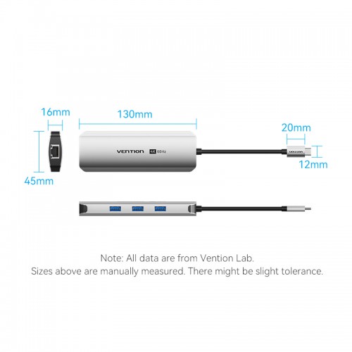 Порт-репликатор Vention - TQKHB, USB Type C, 1-HDMI, 1-RJ45, 3-USB3.0 Type A, PD 100 Вт, TQKHB
