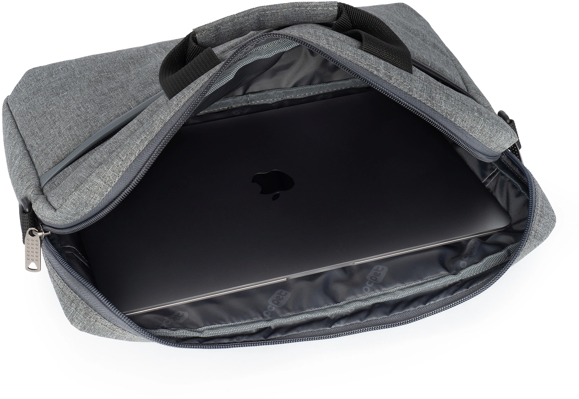 Хотелась лёгкая сумка на 14,5 дюймов. Этот вариант с тёмно-серой тканью выглядит классически, внутри отделение под бумаги. Молнии плавные, ручки удобные. Ноутбук сидит мягко, есть защита от тряски.
