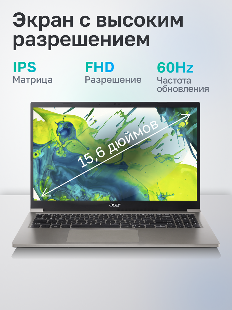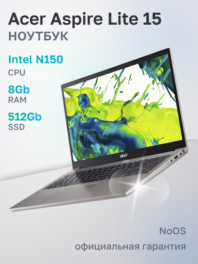 Ноутбук Acer Aspire Lite AL15-33P-C7Z4 - 15.6", 1920x1080 (Full HD), Intel Processor N150 100MHz, DDR5 8 ГБ, SSD 512 ГБ, Intel UHD Graphics 730, Bluetooth, Wi-Fi, 2cell, 6 000mAh, серый, ОС не установлена, NX.D2FCD.002