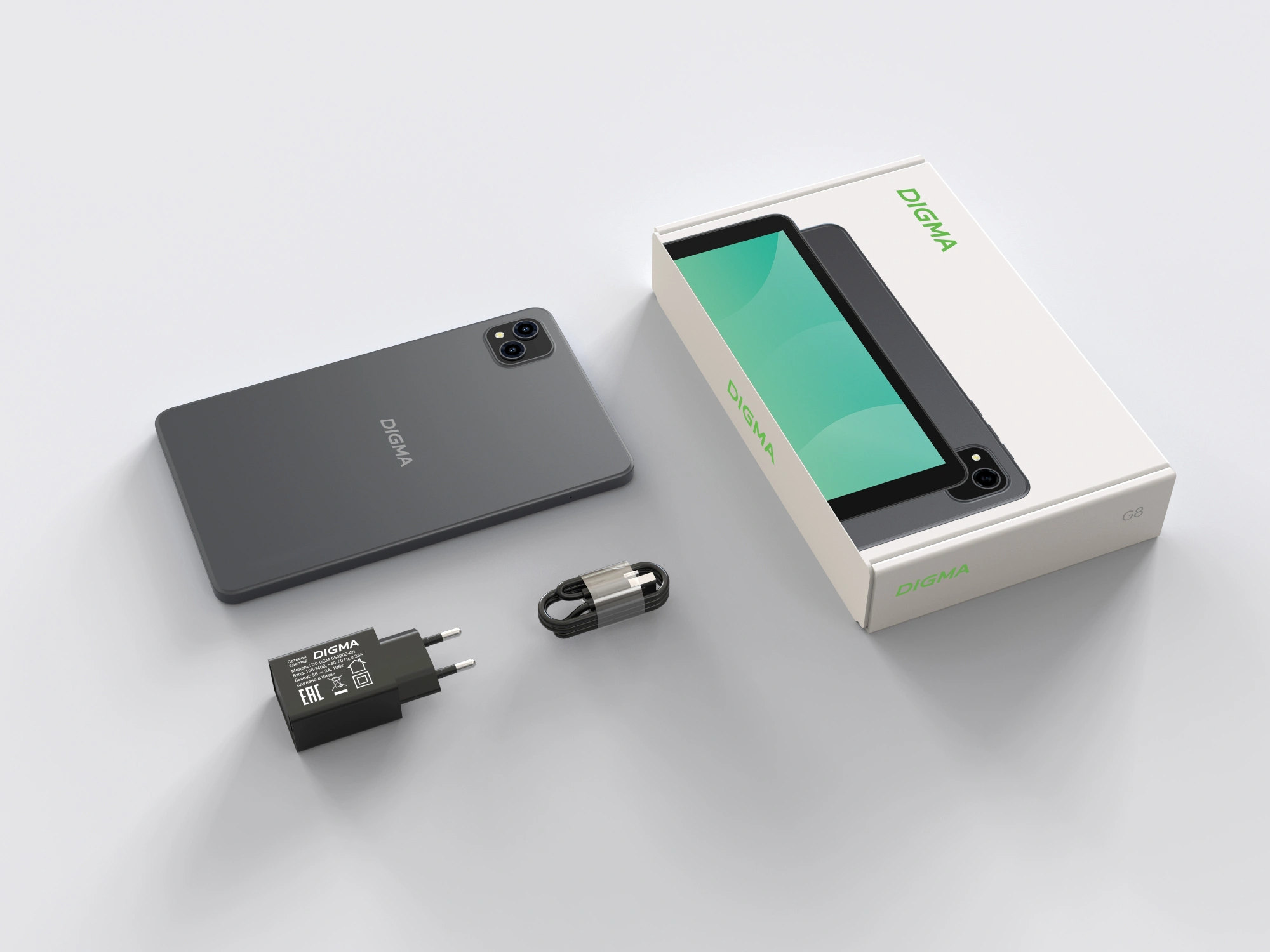 Планшет Digma G8 - 8", 1280x800 (WXGA), 300-nit, SC-series SC9863A 1600MHz 3 ГБ 32 ГБ, Bluetooth, Wi-Fi, LTE, 4 000mAh, тёмно-серый, Android 15 Go, DA6B8P02