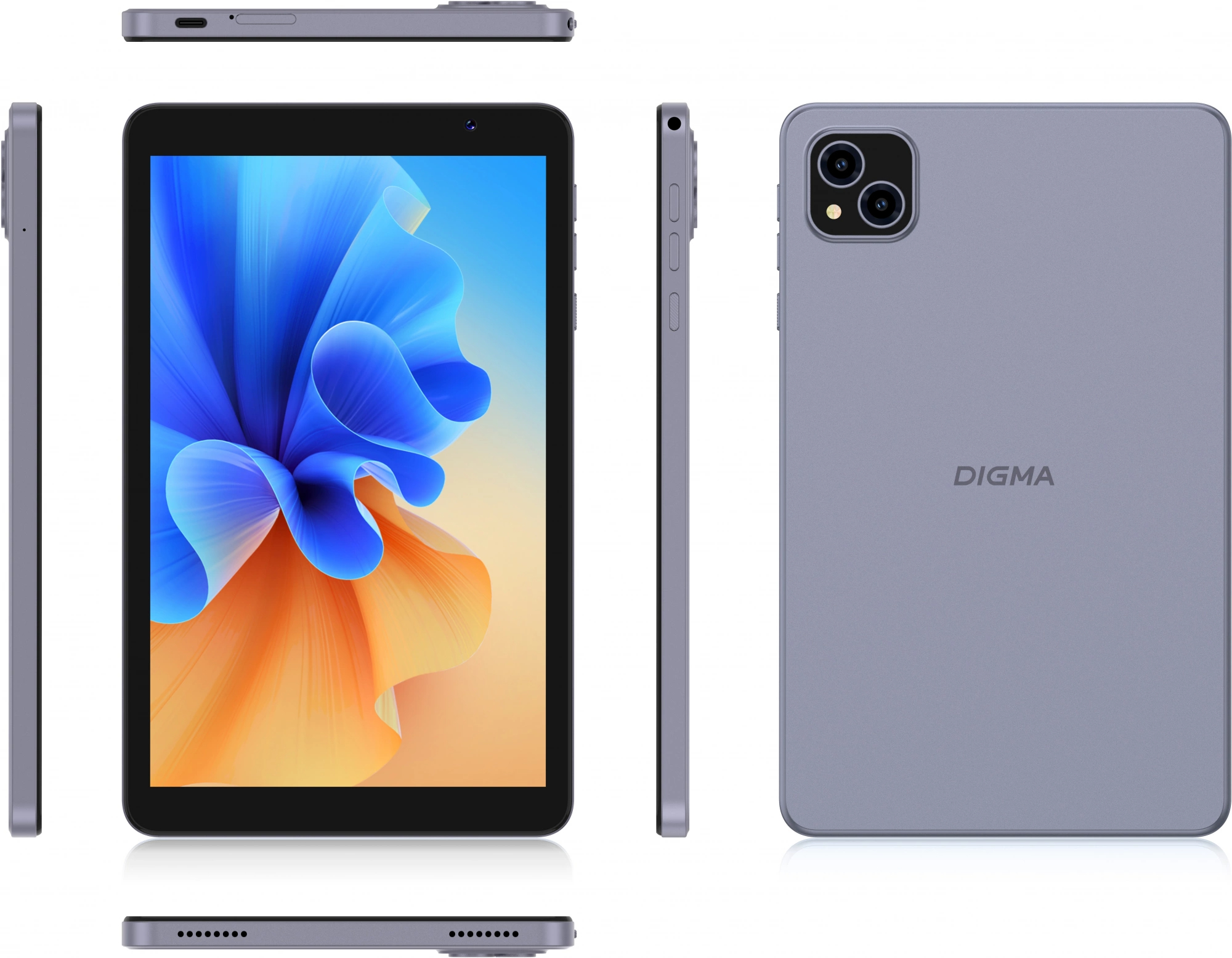 Планшет Digma Q8 - 8", 1280x800 (WXGA), 300-nit, SC-series SC9863A 1600MHz 3 ГБ 32 ГБ, Bluetooth, Wi-Fi, 3G, LTE, TouchScreen, 4 500mAh, серый, Android 14, DA6B8P01