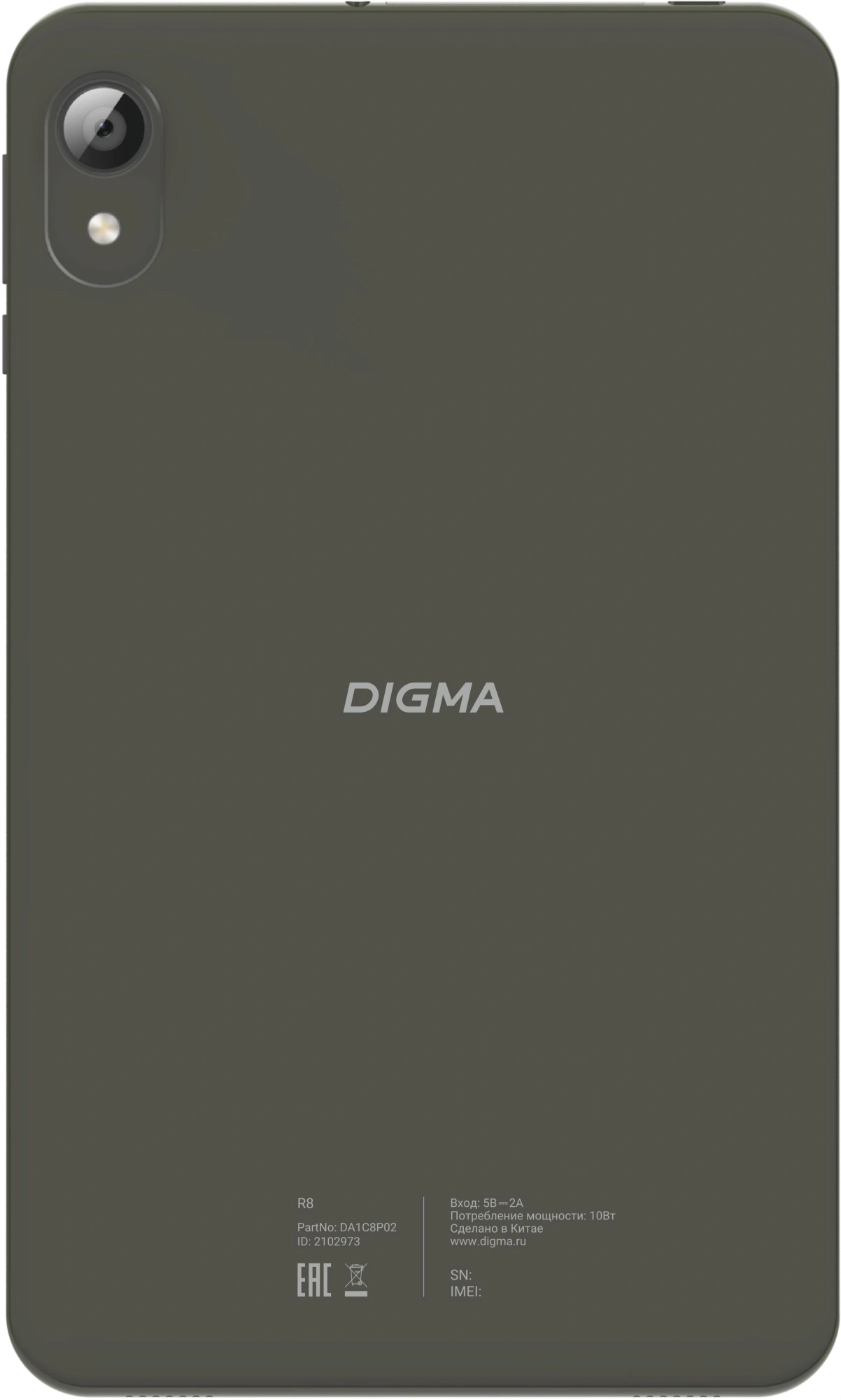 Планшет Digma R8 - 8", 1280x800 (WXGA), 300-nit, Tiger T606 1600MHz 4 ГБ 64 ГБ, Bluetooth, Wi-Fi, LTE, 4 000mAh, тёмно-серый, Android 15, DA1C8P02