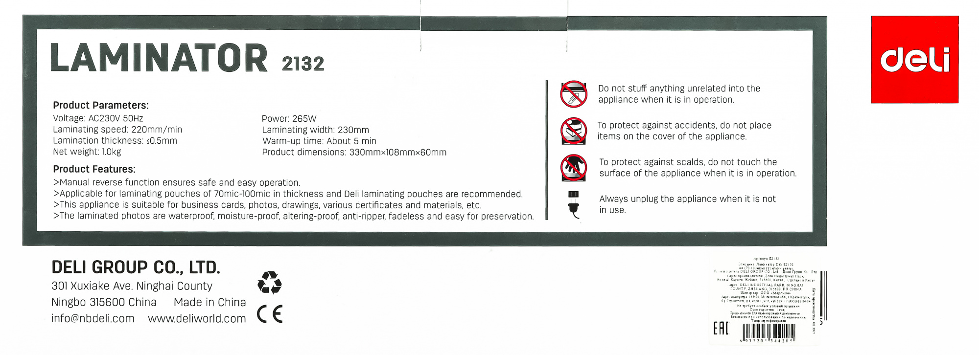 Ламинатор Deli E2132, A4, E2132