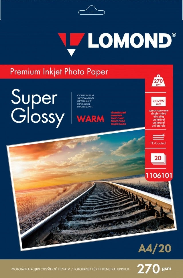 Упаковка бумаги LOMOND, A4, 20л, покрытие глянцевое, 270г/м², тепло-белый, 1106101