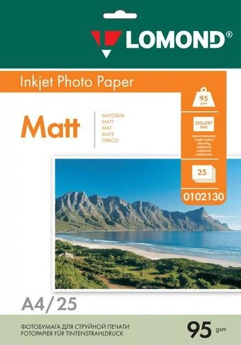 Упаковка бумаги LOMOND, A4, 25л, покрытие матовое, 95г/м², белый, 0102130