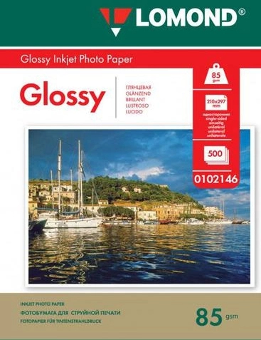 Упаковка бумаги LOMOND, A4, 500л, покрытие глянцевое, 85г/м², белый, 0102146