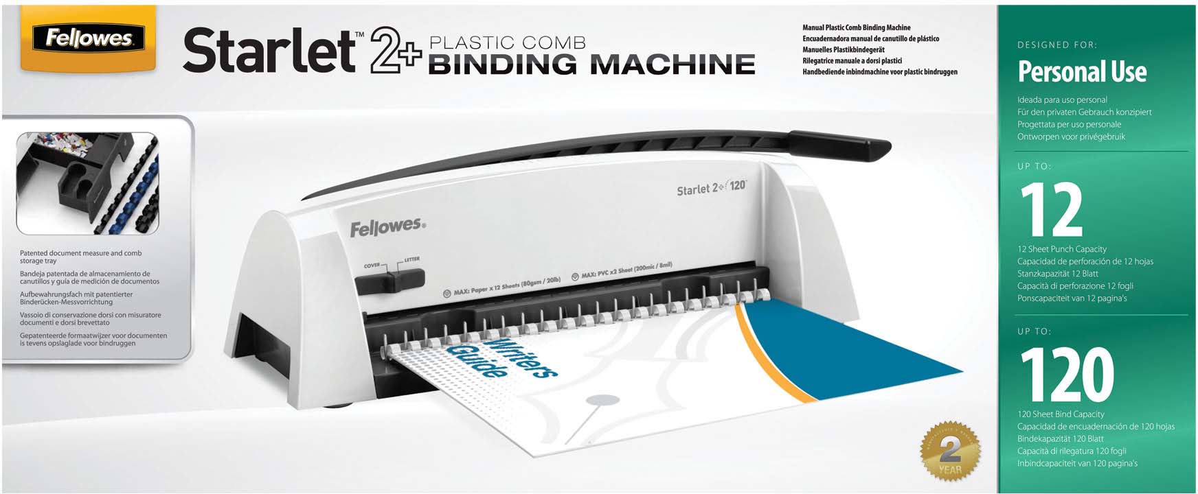 Переплетчик FELLOWES Starlet 2+ A4 на пластиковую пружину, механическая перфорация, FS-52279