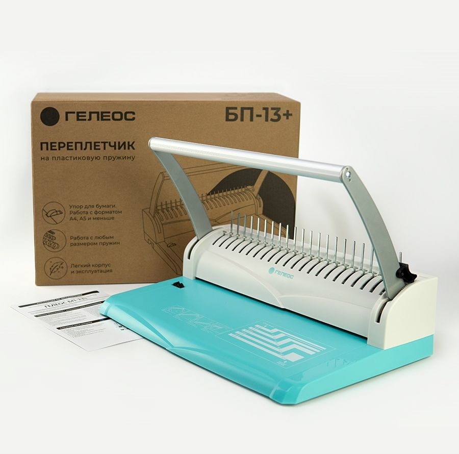 Переплетчик HELEOS БП13п A4 на пластиковую пружину, механическая перфорация, БП13ПББ
