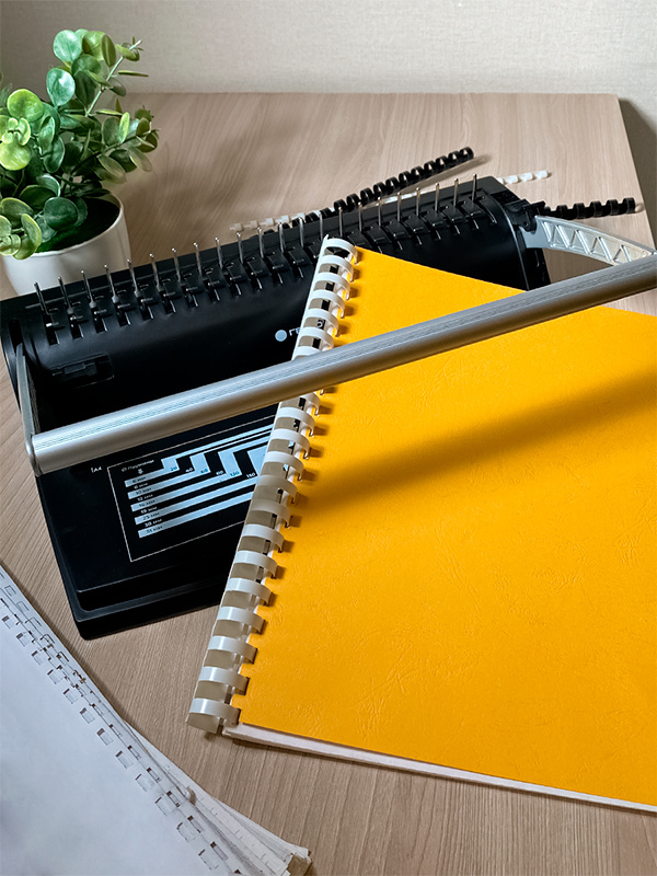 3. Переплет: Вставьте пластиковую пружину.