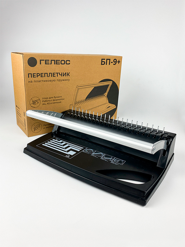 Переплетчик HELEOS БП9п A4 на пластиковую пружину, механическая перфорация, БП9П
