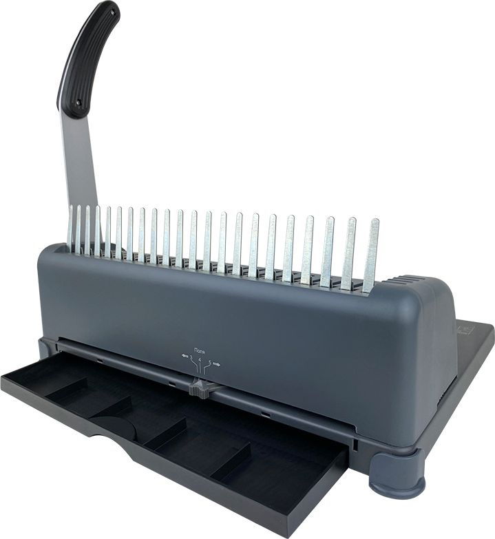 Для небольшого офиса это решение оказалось удобным. С его помощью брошюруем материалы для собраний. Работает быстро, занимает минимум места.