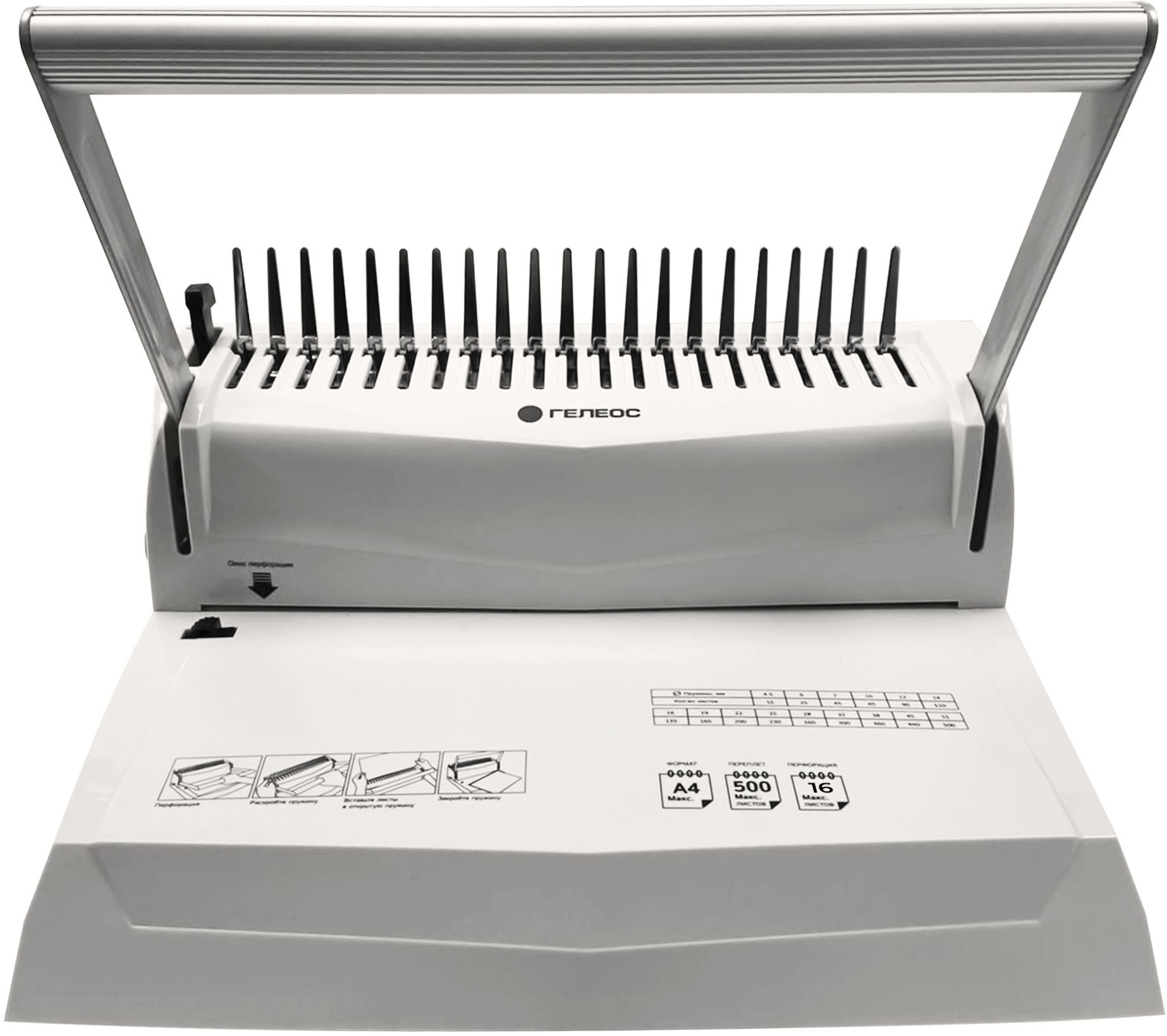 Переплетчик HELEOS БП-16 A4 на пластиковую пружину, механическая перфорация, БП-16