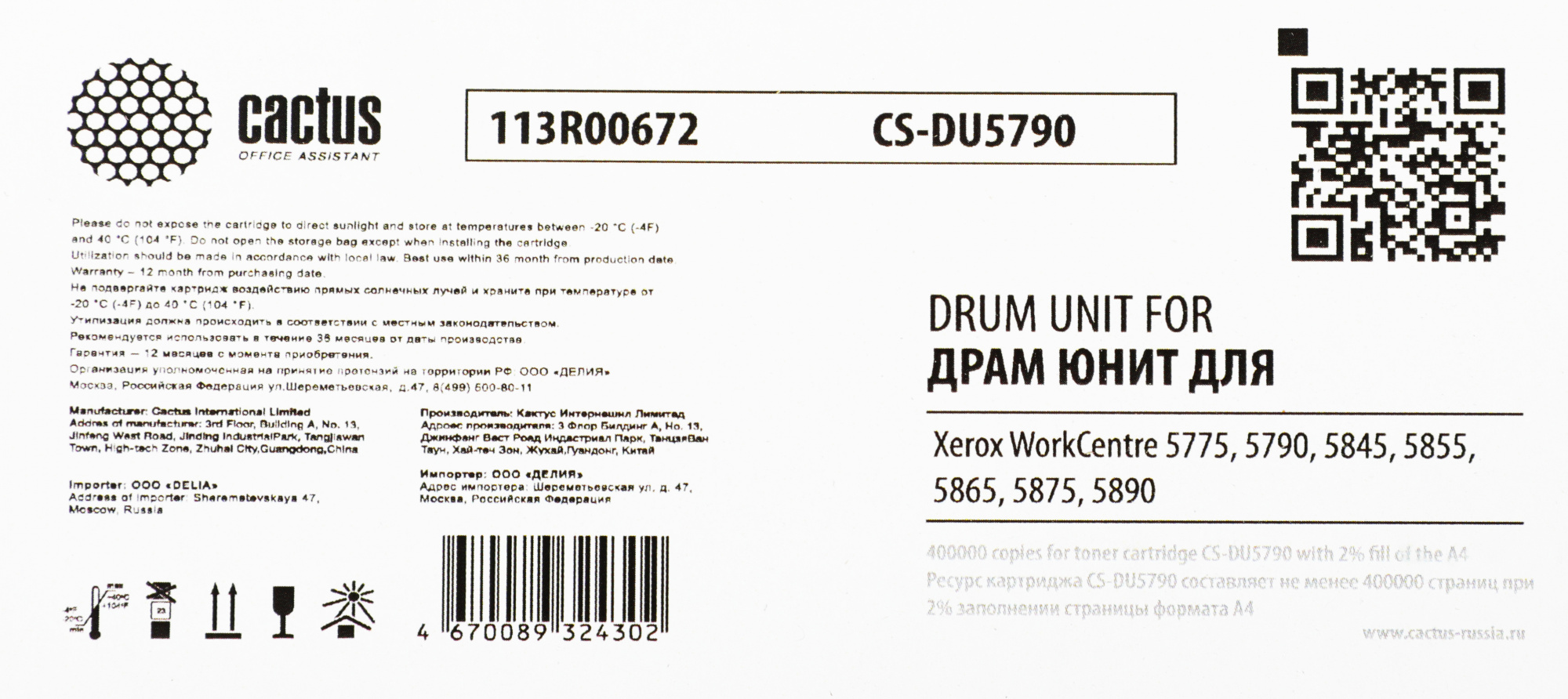 Барабан CACTUS - DU5790, Лазерный, Черный, 400000стр, CS-DU5790