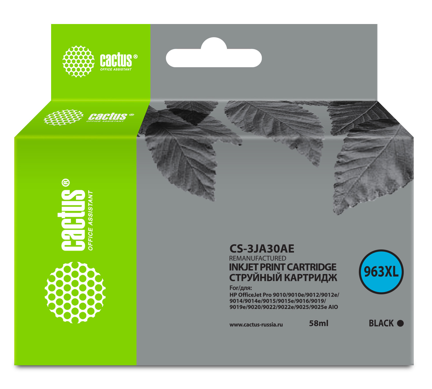 Картридж CACTUS - 3JA30AE, Струйный, Черный, 58мл, аналог HP 963XL, CS-3JA30AE