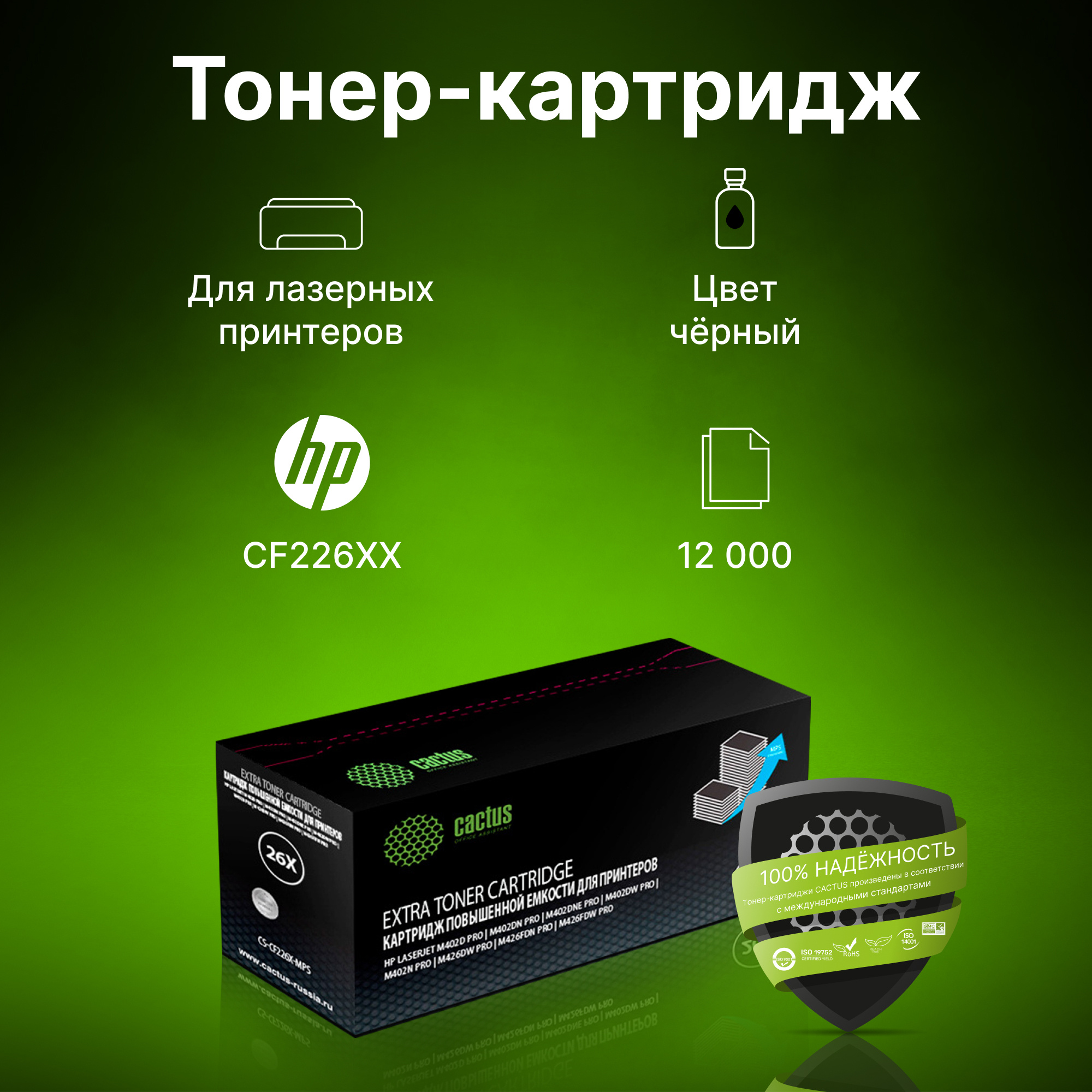 Тонер-картридж CACTUS - 26X, Лазерный, Черный, 12000стр, аналог HP 26X, CS-CF226X-MPS
