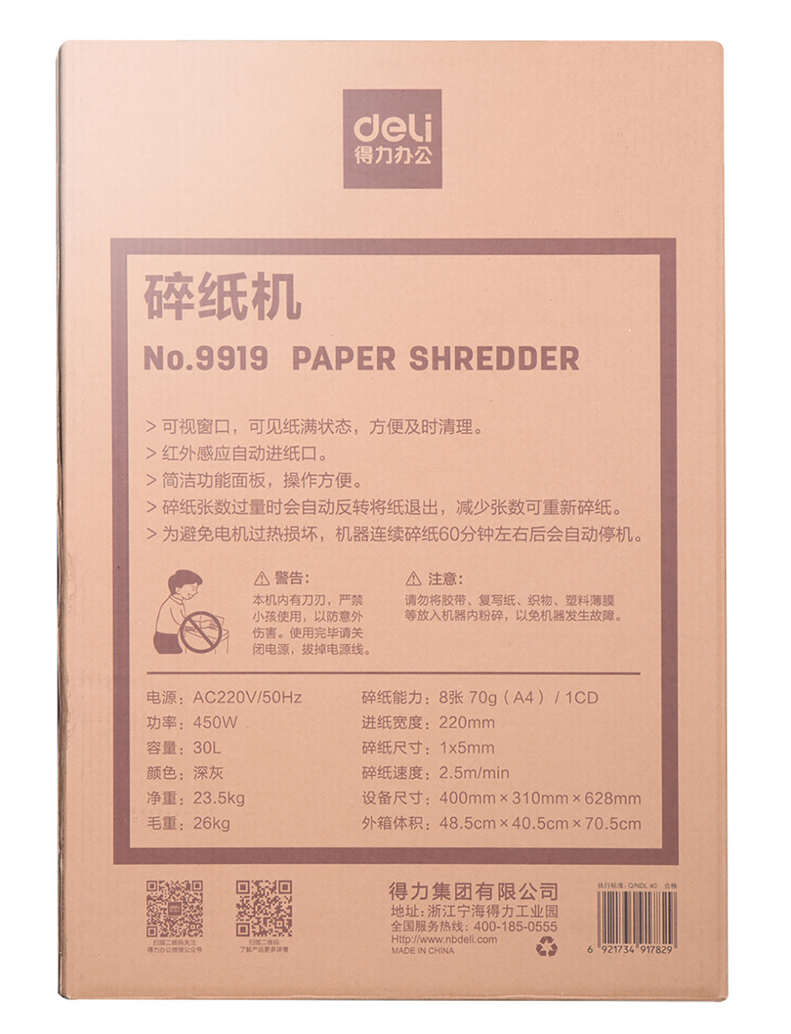 Уничтожитель бумаги Deli 9919, фрагменты 1x5 мм, серый, 9919