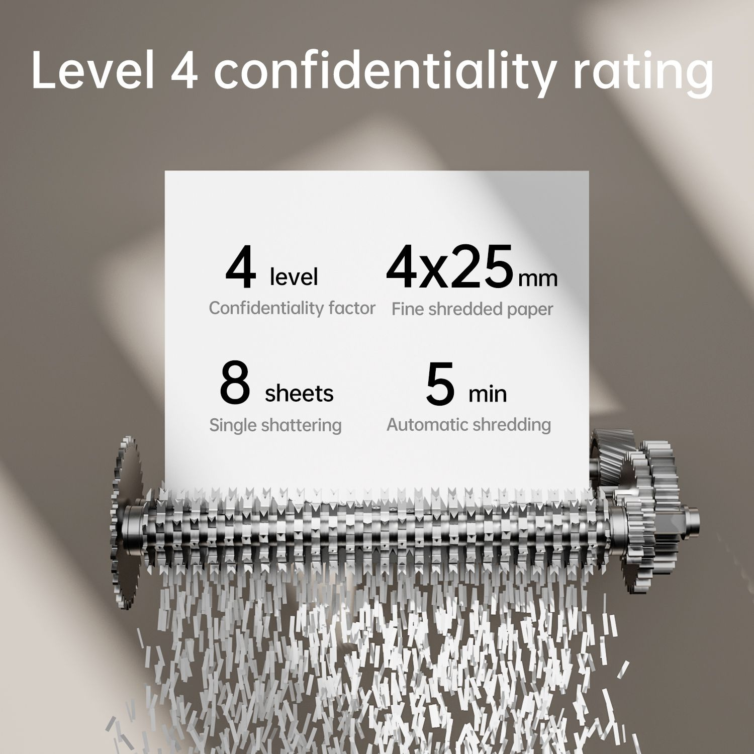 Необходим был компактный аппарат для маленького офиса. Измельчение проходит перекрёстно, фрагменты выходят достаточно мелкими. Механизм запускается автоматически, шум умеренный, контейнер легко снять. При перегрузке происходит автоматический откат, что спасает ножи от поломки.