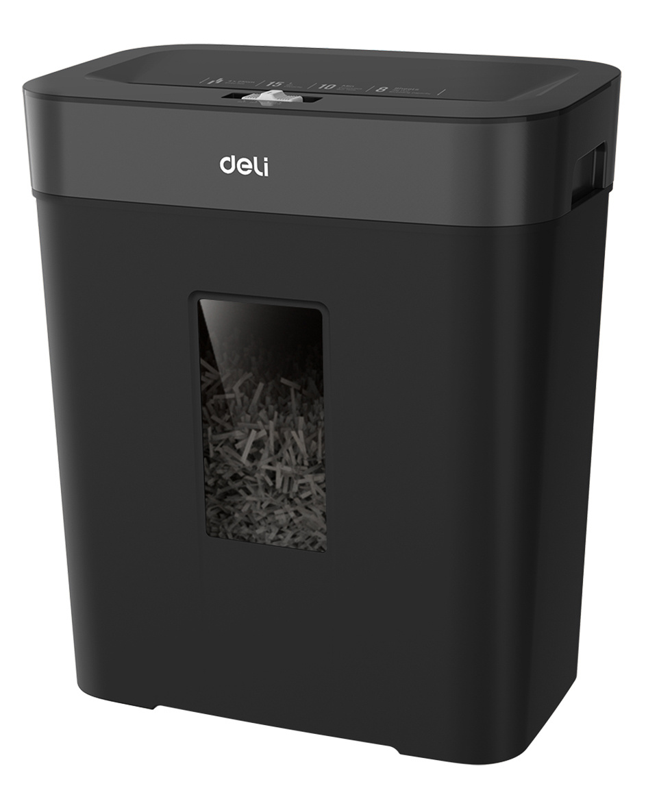 Deli ET023 перерабатывает до 23 листов за проход в перекрестную крошку 4×40 мм: уровень P-3, корзина 23 л.