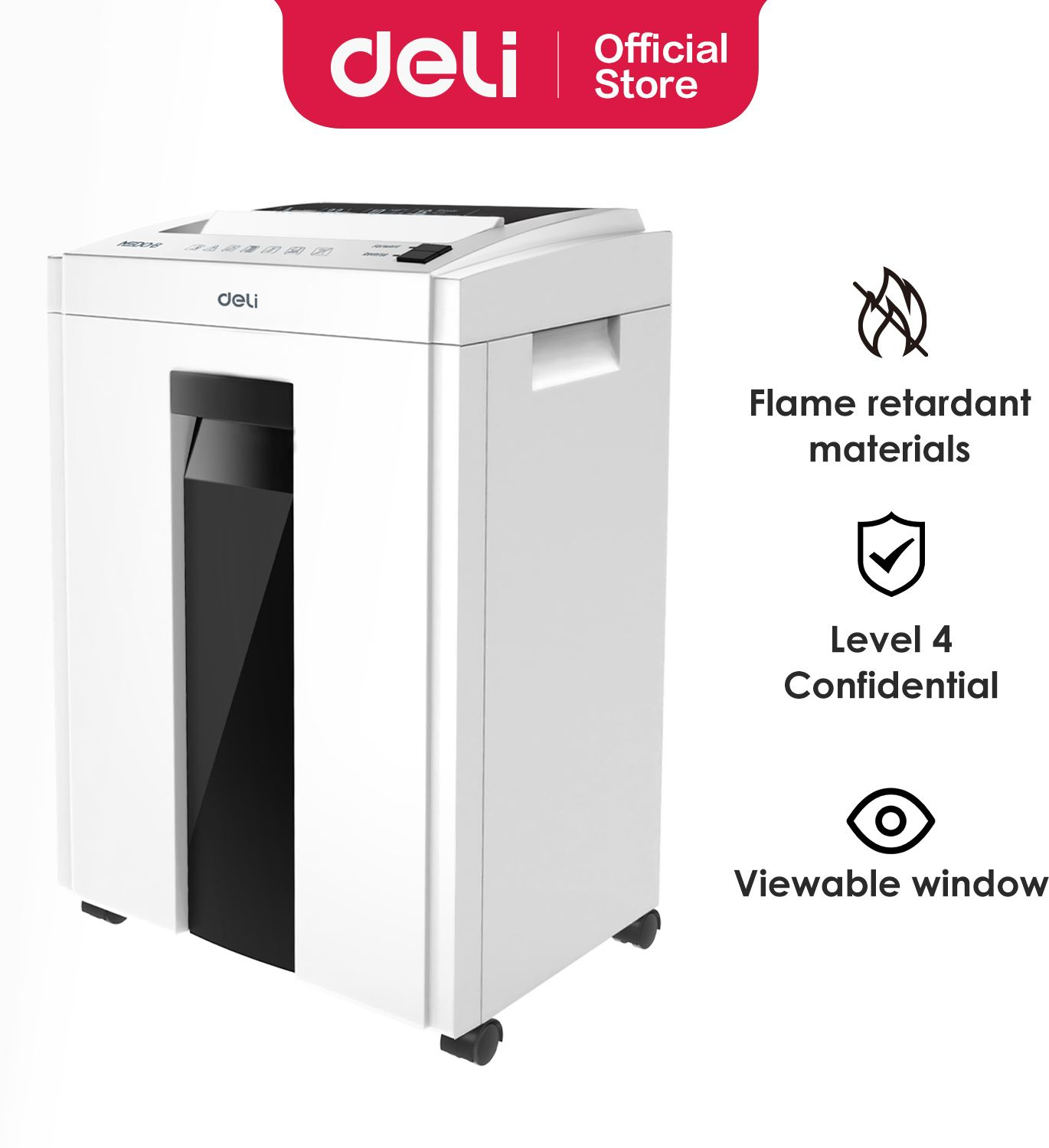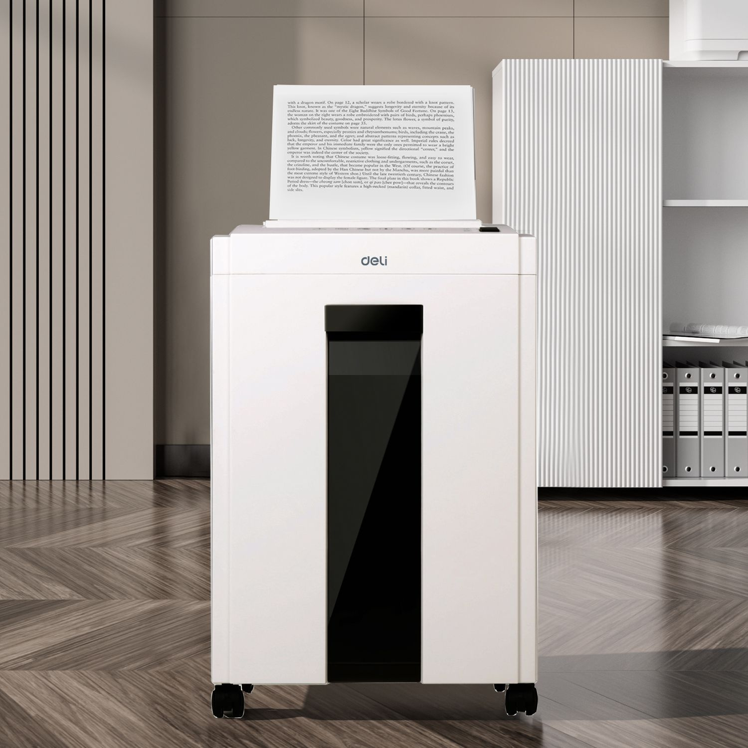 Deli ET053 уничтожает до 5 листов и скобы, резка Particles 4×25 мм. Корзина 13 л компактна и мобильна.