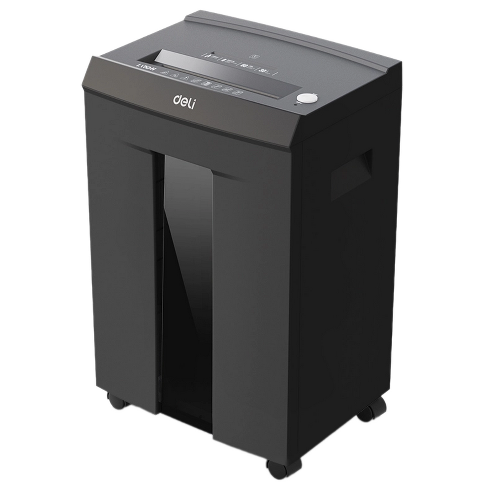 Deli ET098 уничтожает до 8 листов за раз в крошку 4×40 мм, корзина 20 л. Компактный дизайн украсит любой офис.