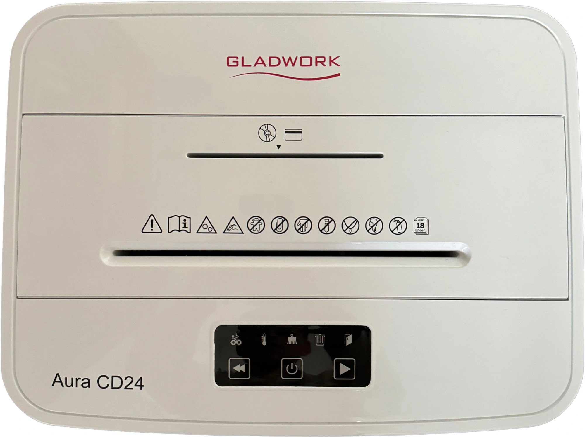 Gladwork CD24 уничтожает до 24 листов сквозным перекрёстным резом: частицы 4×40 мм. Корзина 28 л, функция реверса и автостоп при перегреве.