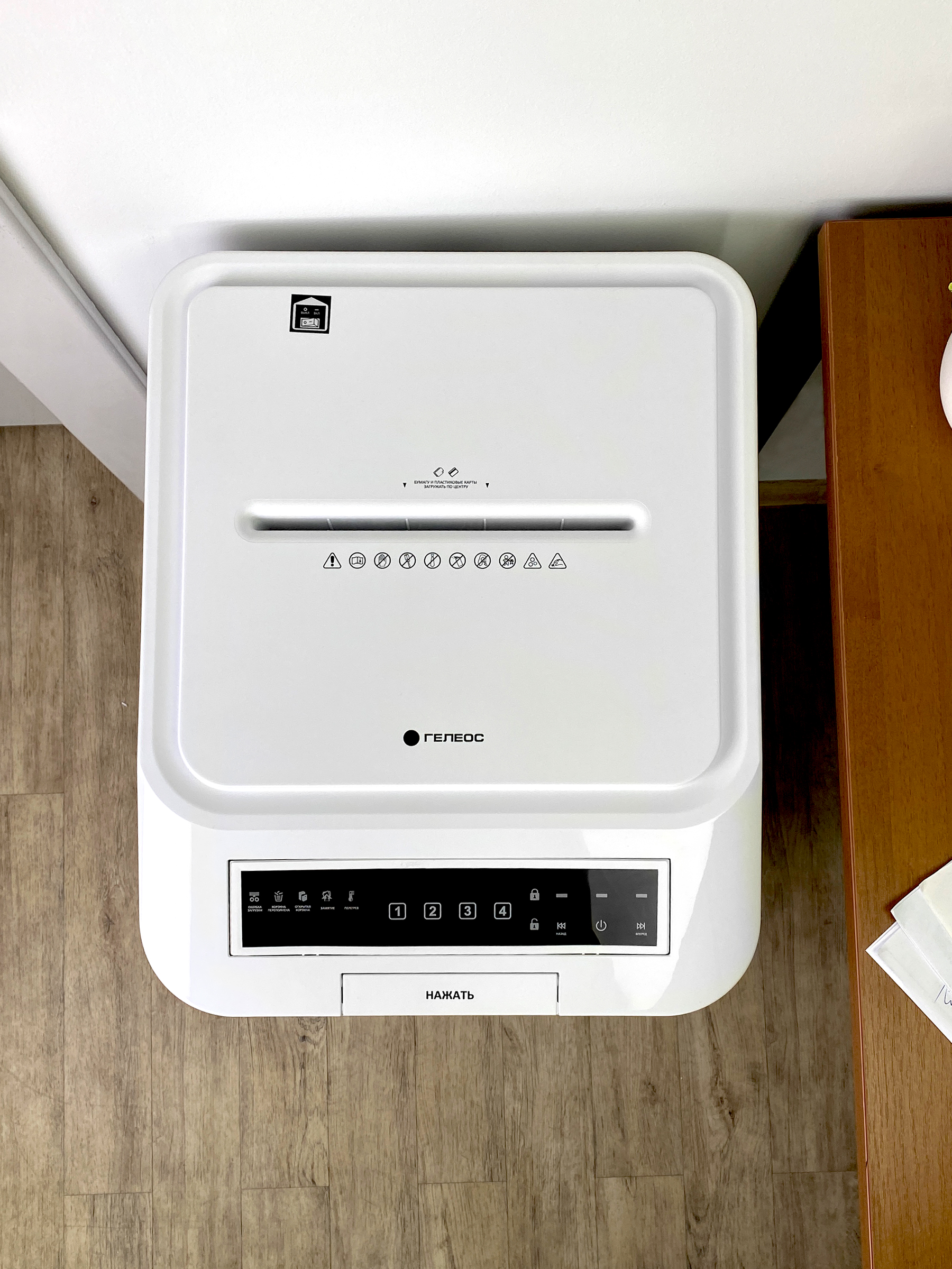 Отлично, что корзина почти на полсотни литров: для нашего отдела это спасение, не приходится постоянно бежать опустошать. Контрольной панели достаточно пары кнопок. В общем, машина для больших объёмов документов, рекомендую.