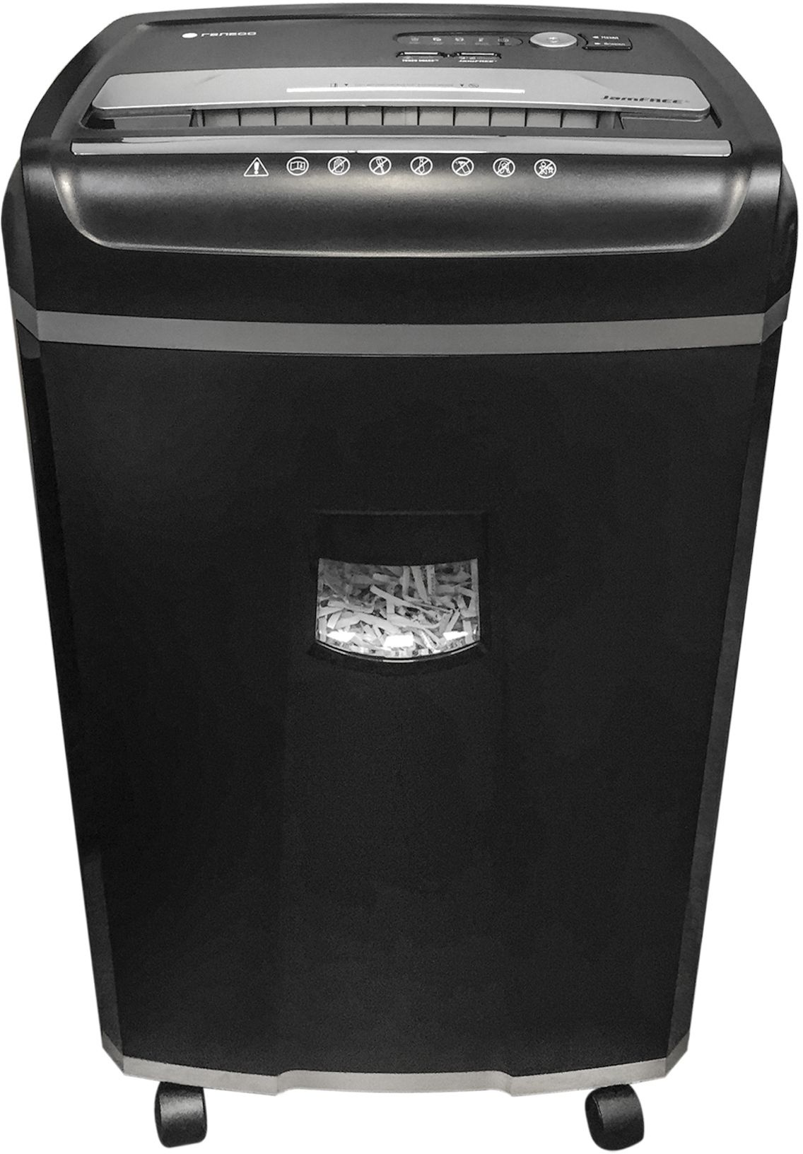 Профессиональный аппарат для массового шреддинга: пропускает несколько десятков листов, не заедает. Полосы мелкие, прочесть нельзя. Колёсики позволяют мобильность, при таком весе это важно. Многим нравится тихий режим, не мешает разговаривать.