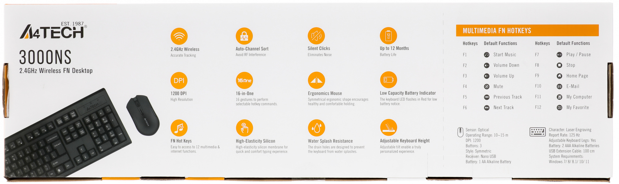 Выбрать товарыКомплект клавиатура/мышь A4Tech, Беспроводной, чёрный, 3000NS