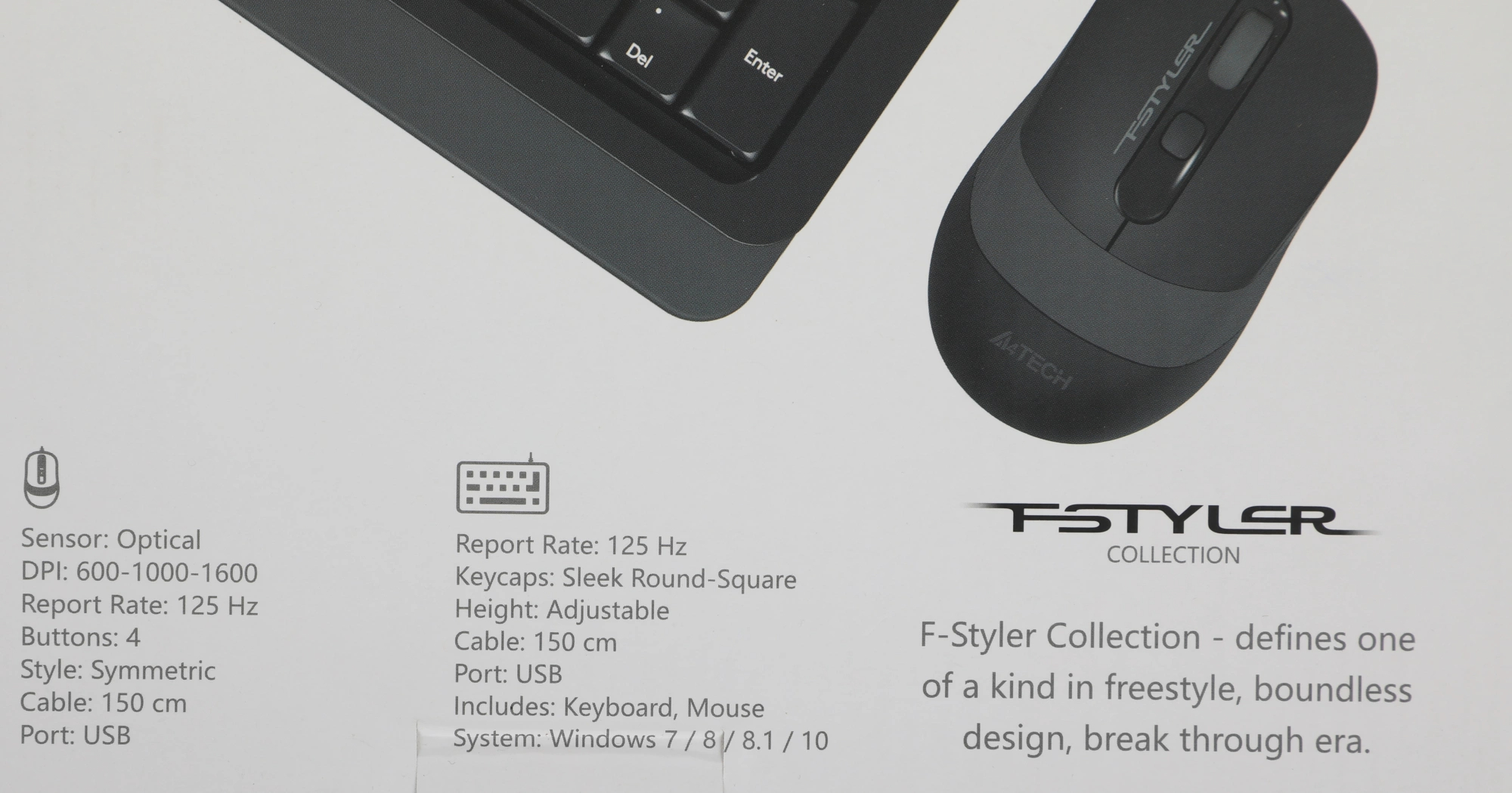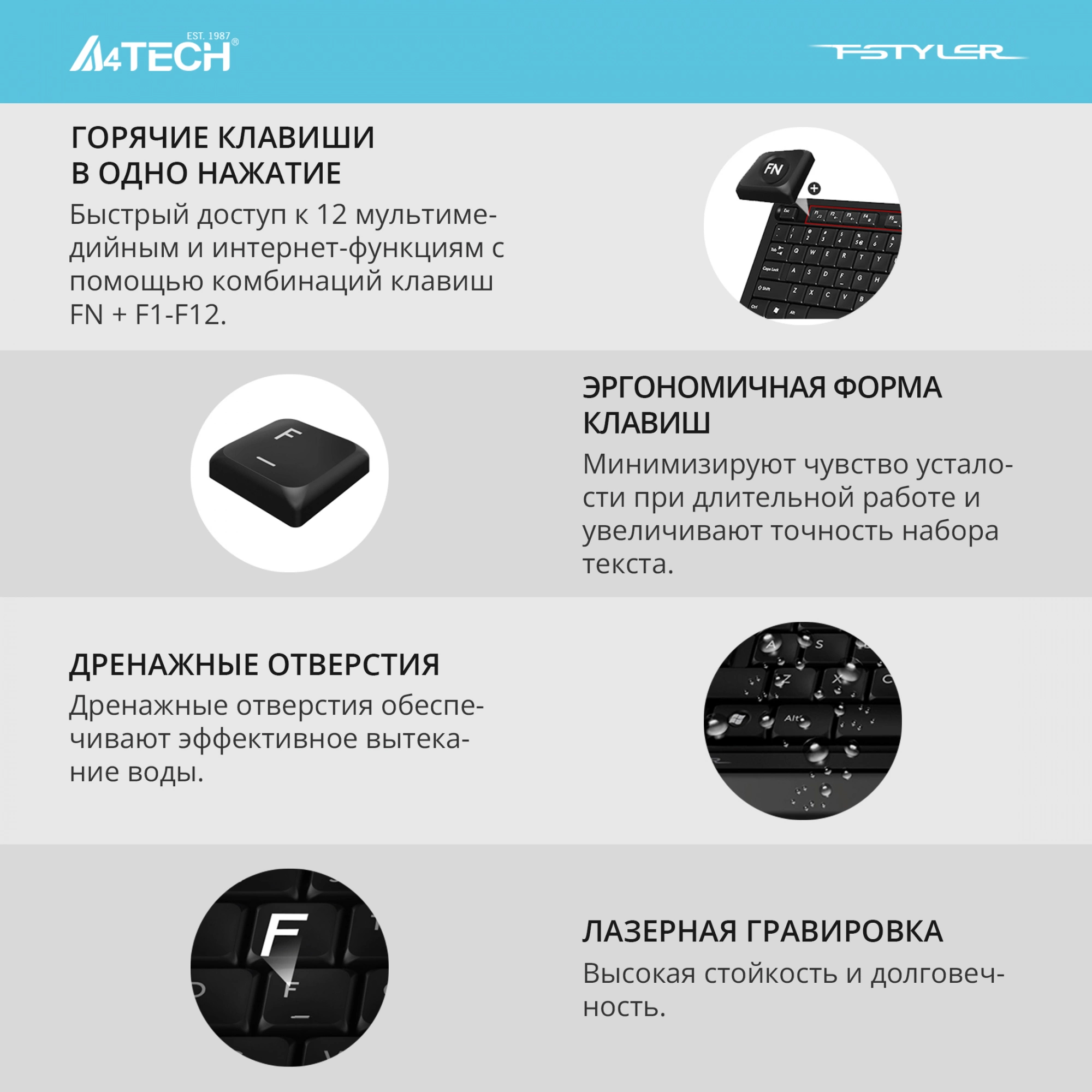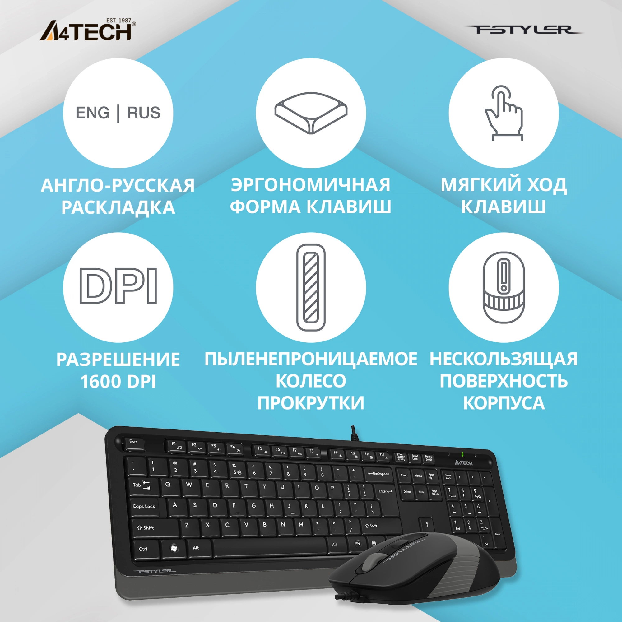Выбрать товарыКомплект клавиатура/мышь A4Tech, Проводной, чёрный, F1010 GREY