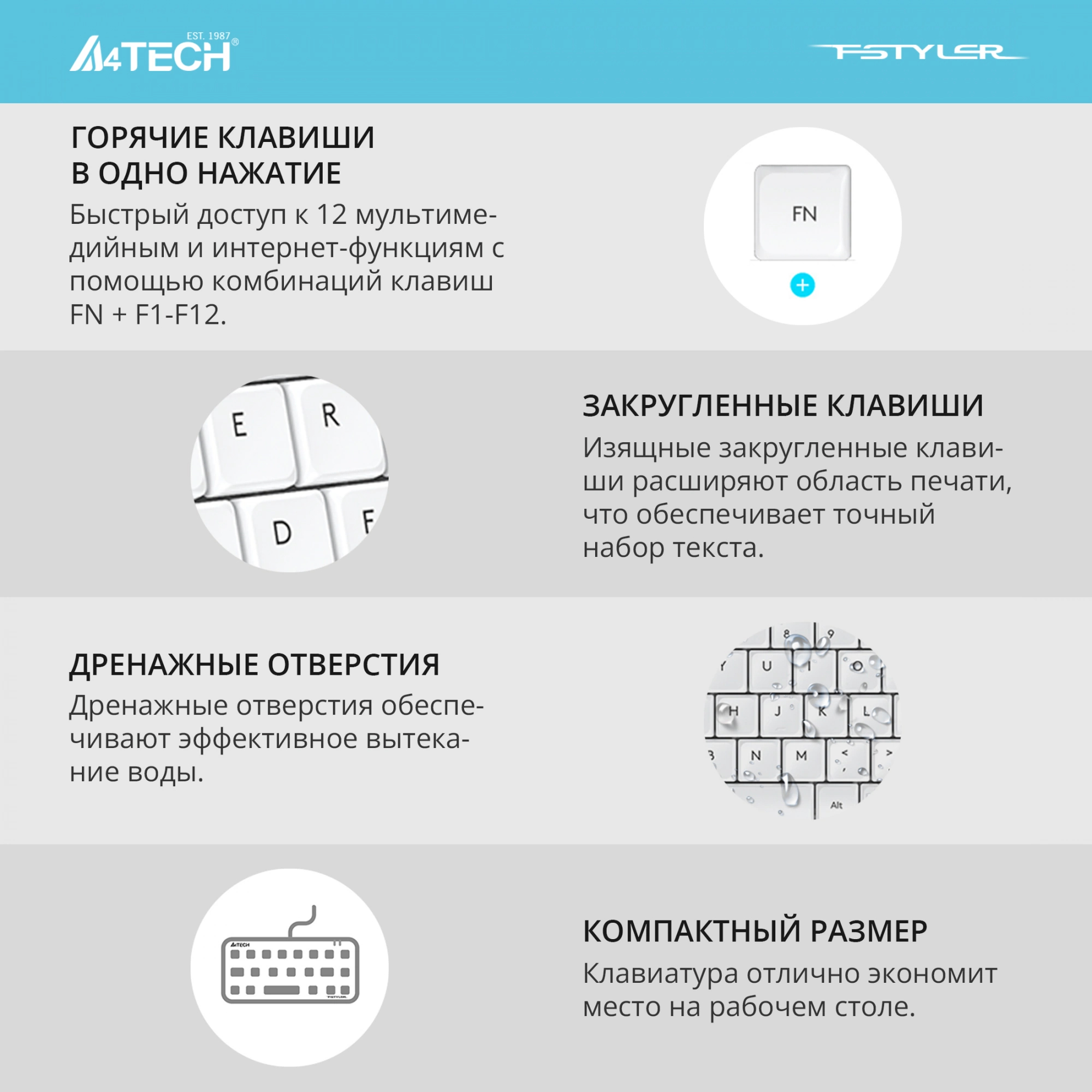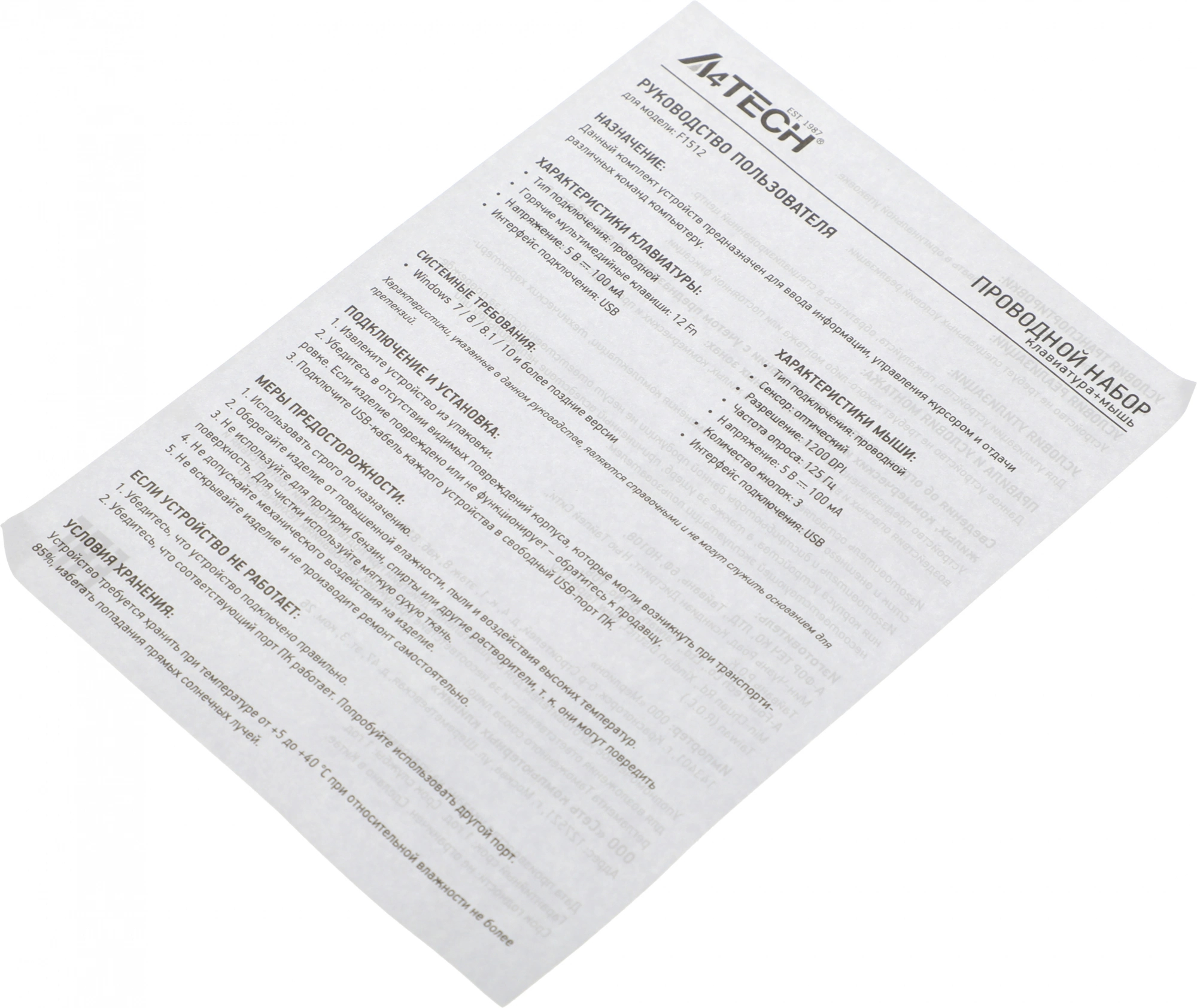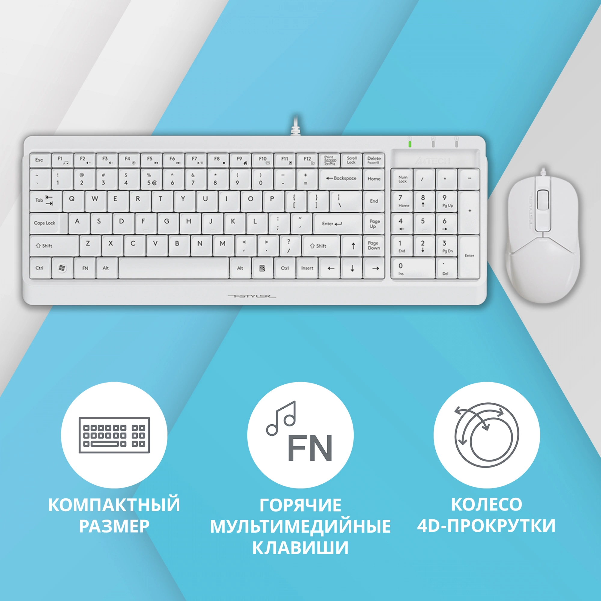 Комплект клавиатура/мышь A4Tech, Проводной, белый, F1512 WHITE
