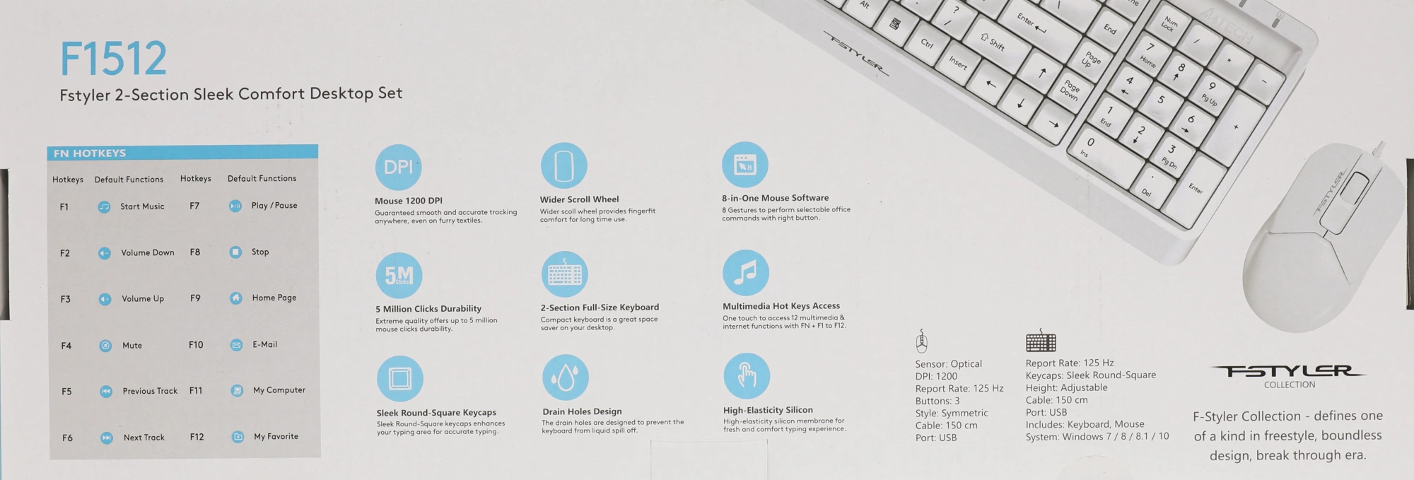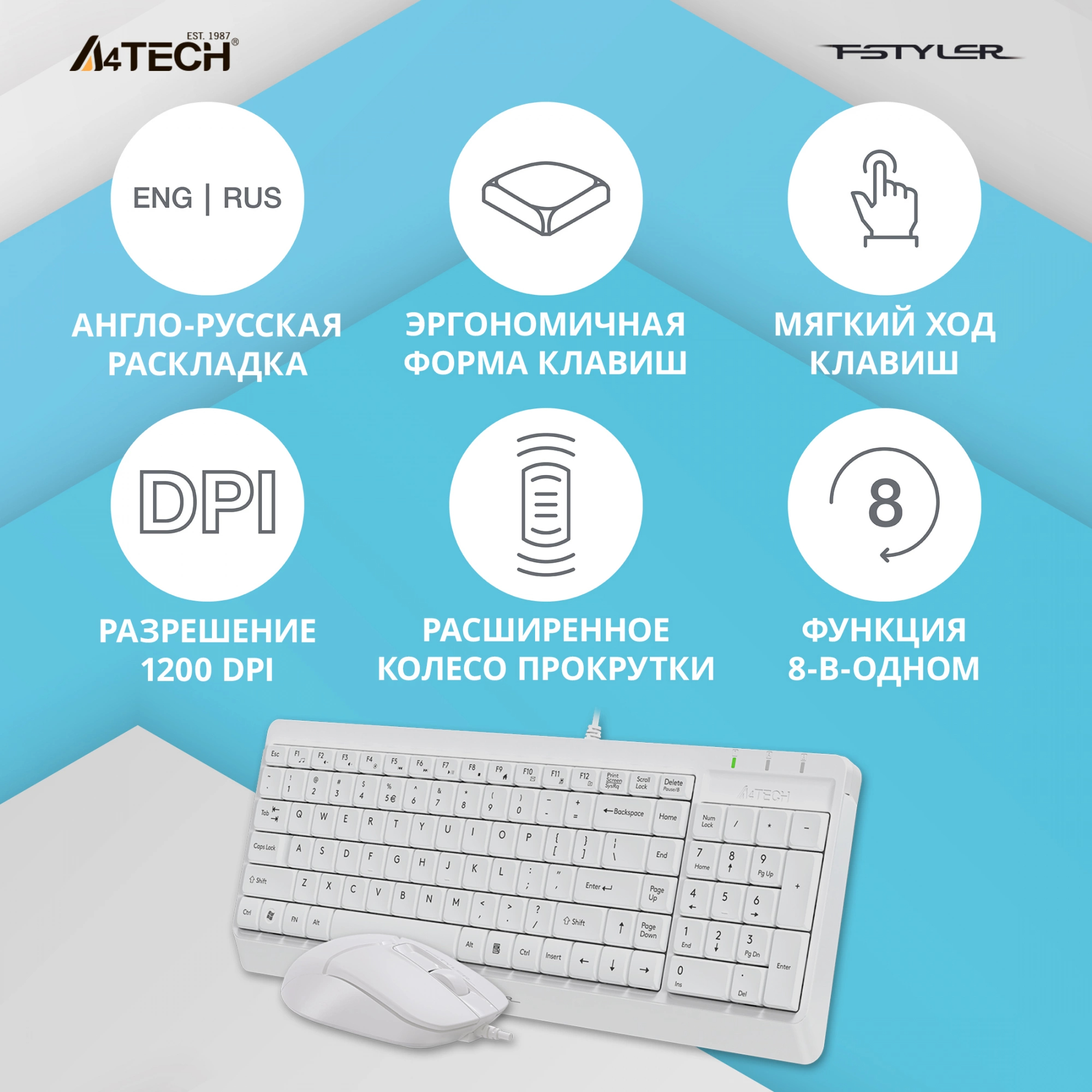 Выбрать товарыКомплект клавиатура/мышь A4Tech, Проводной, белый, F1512 WHITE