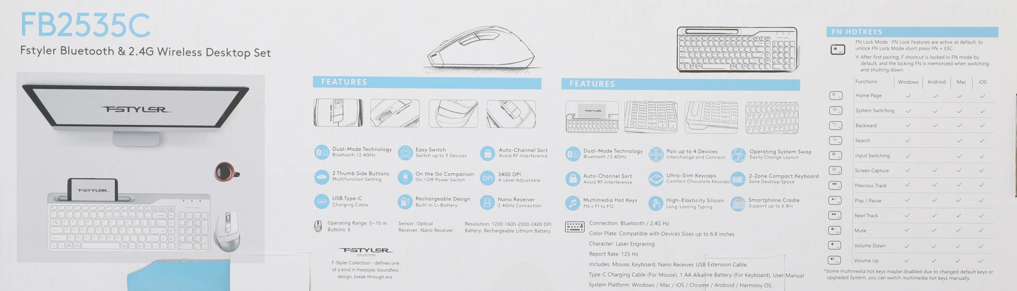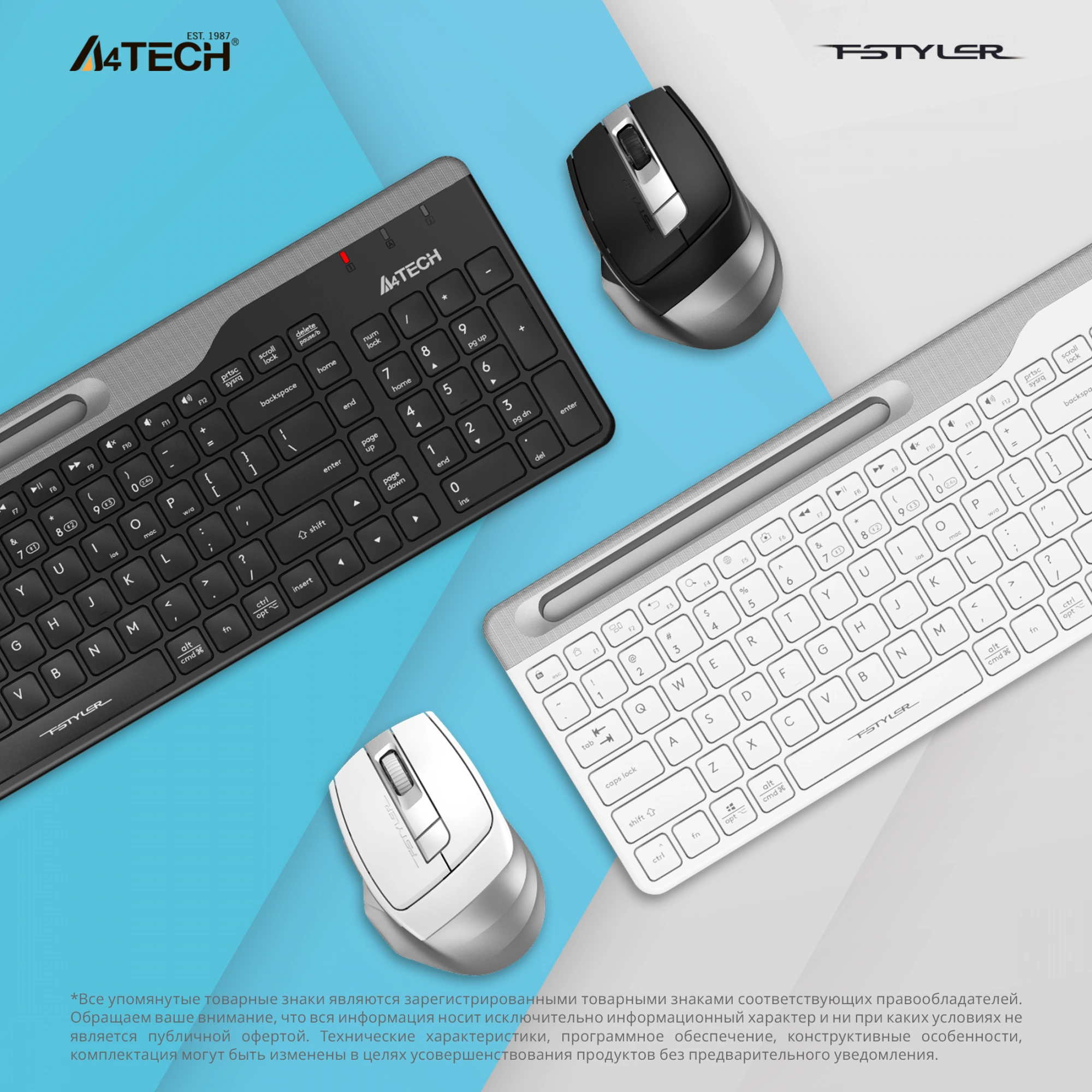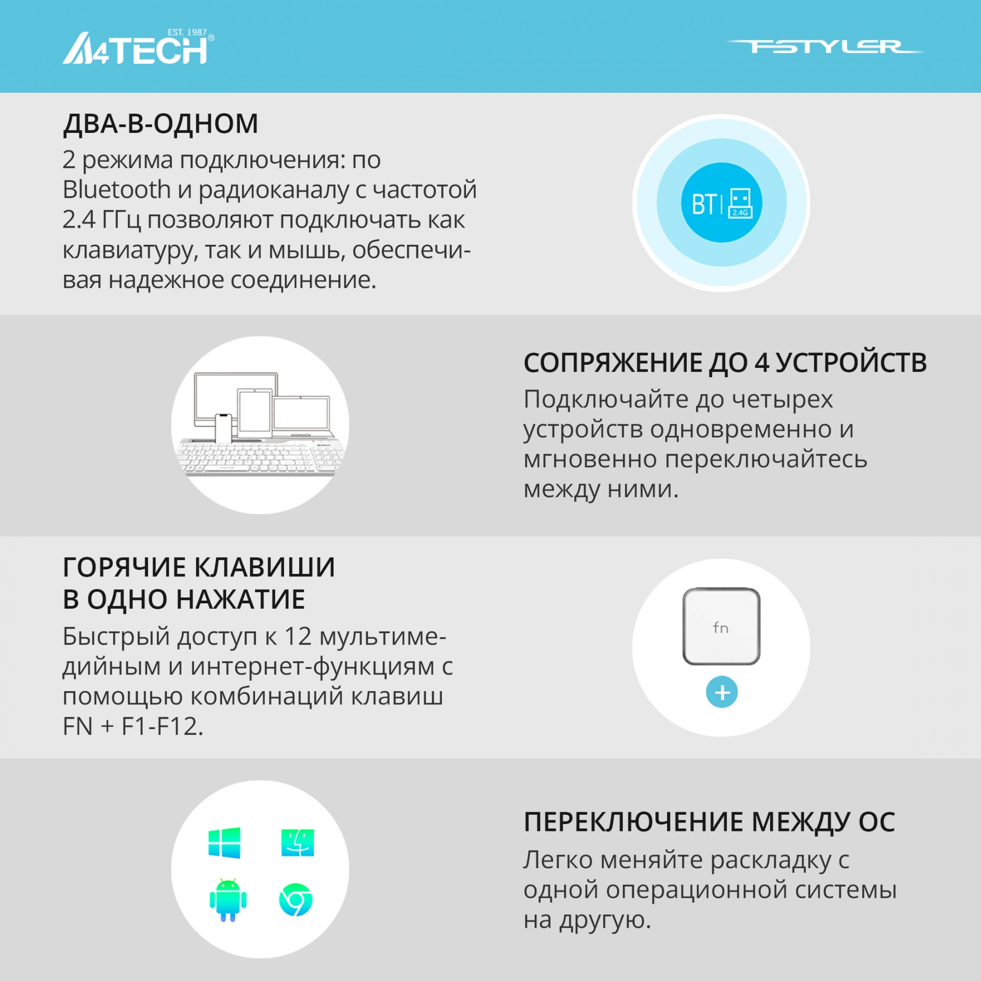 Комплект клавиатура/мышь A4Tech, Беспроводной, Bluetooth, белый, FB2535C ICY WHITE