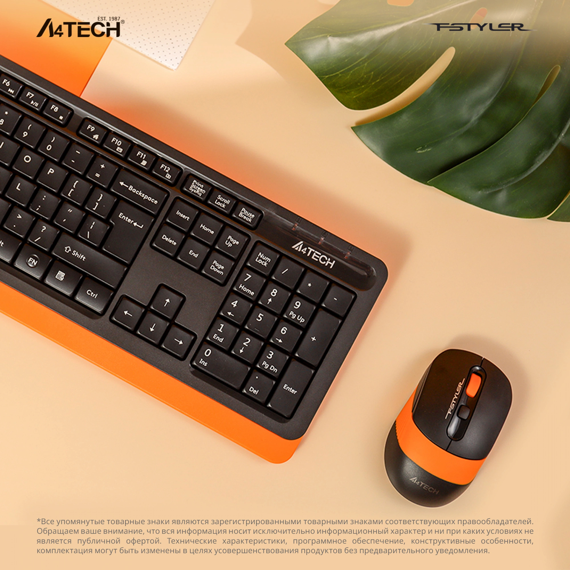 Комплект клавиатура/мышь A4Tech, Беспроводной, чёрный, FG1010 ORANGE