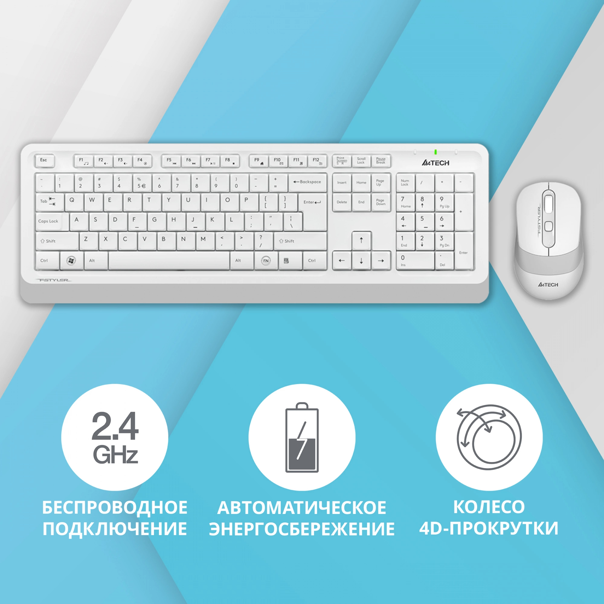 Комплект клавиатура/мышь A4Tech, Беспроводной, белый, FG1010 WHITE
