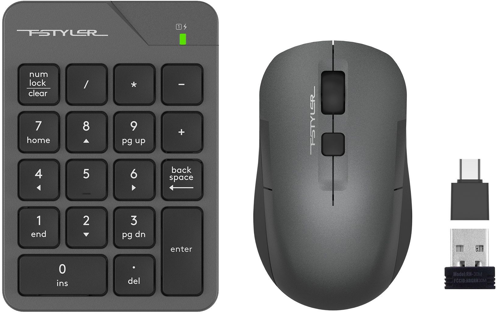 Выбрать товарыКомплект числовой блок/мышь A4Tech, Беспроводной, серый, FG1600C