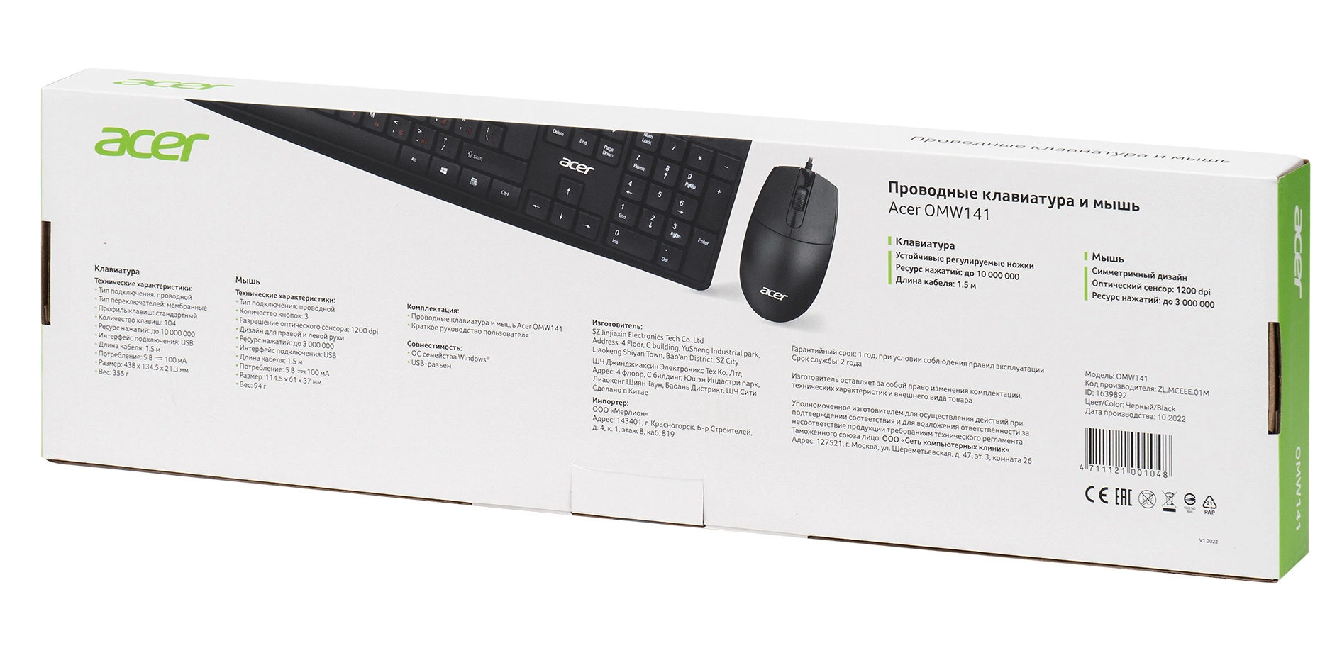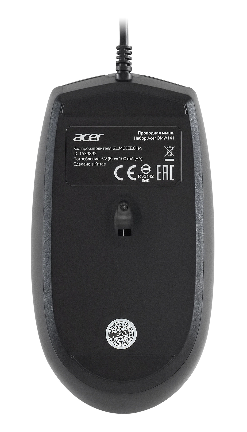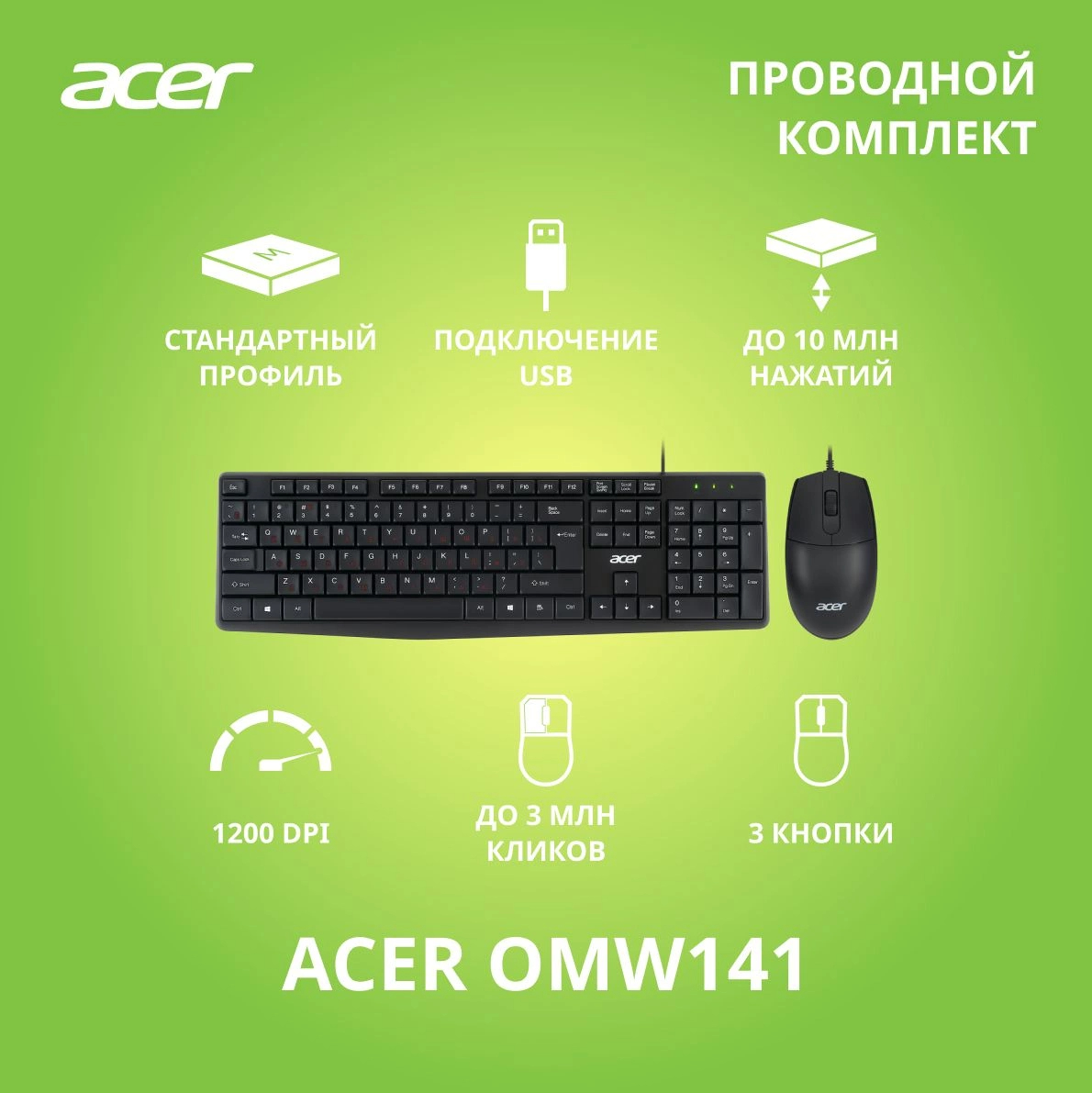 Комплект клавиатура/мышь Acer, Проводной, чёрный, ZL.MCEEE.01M