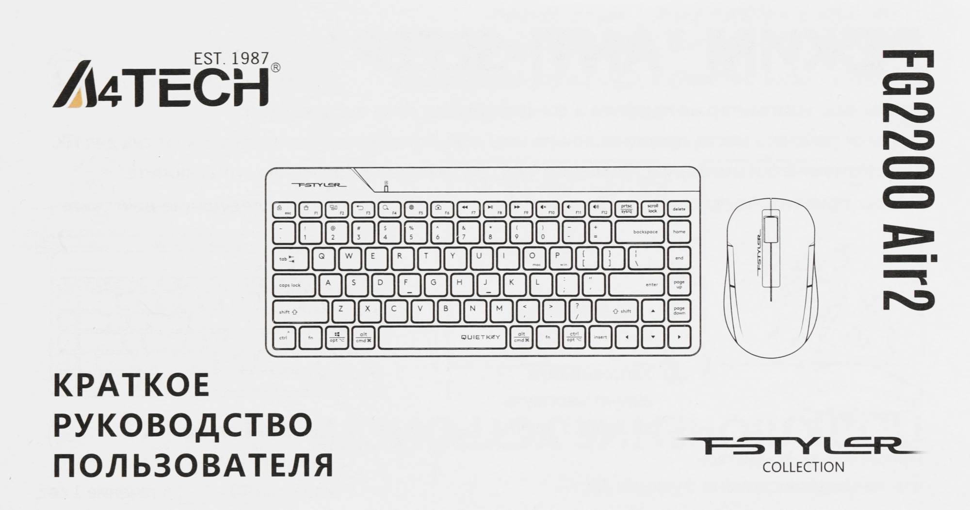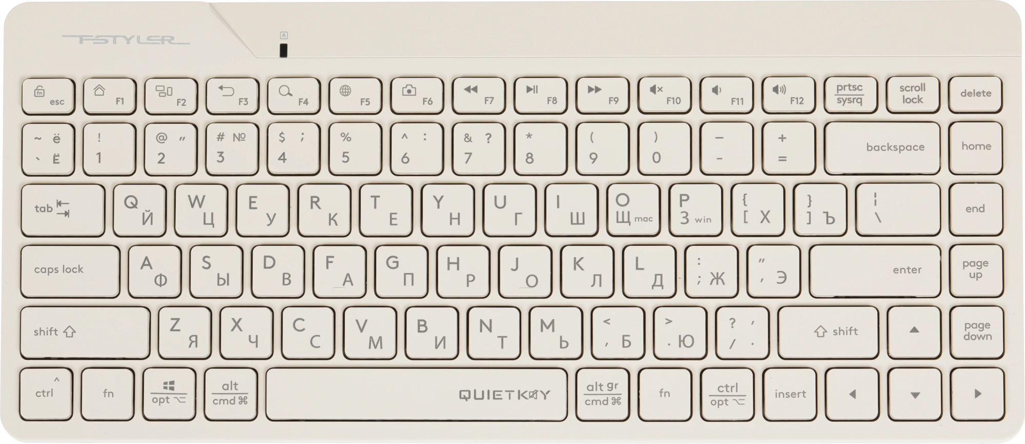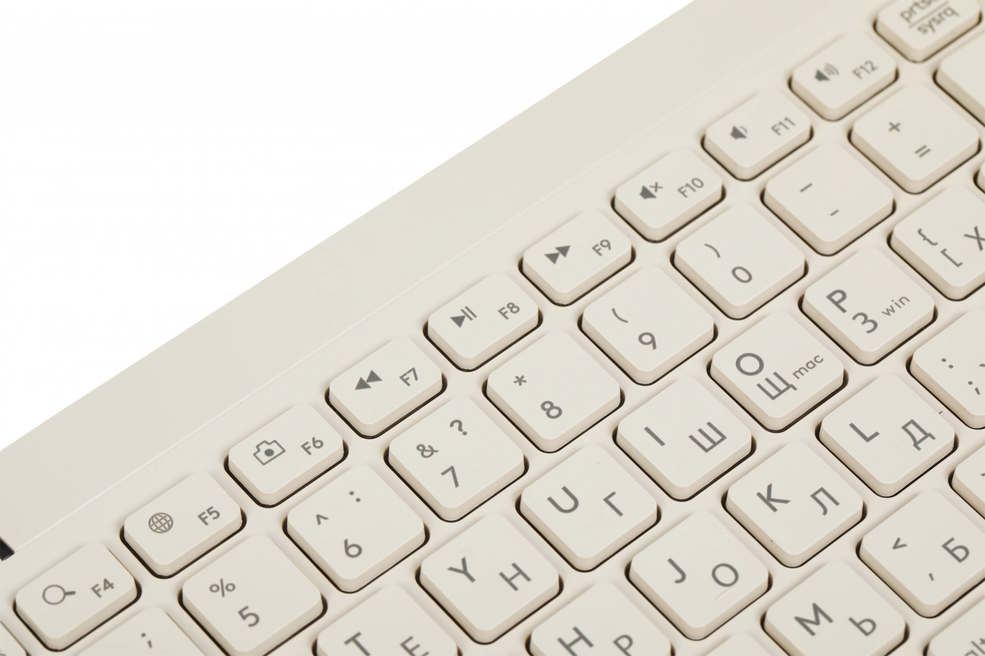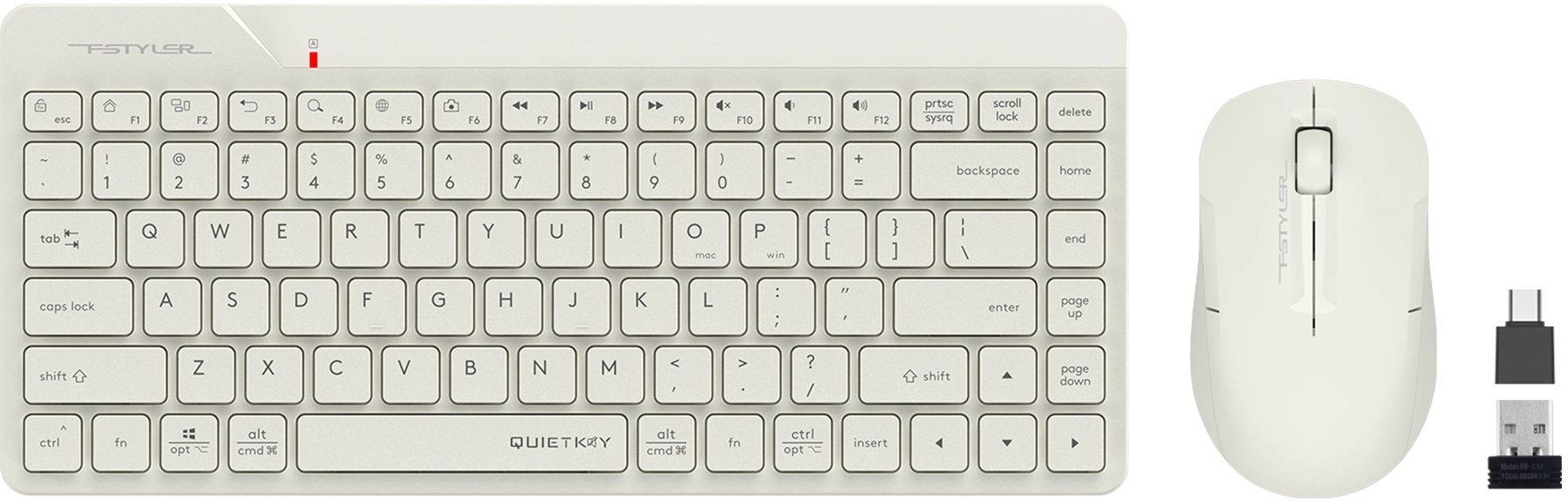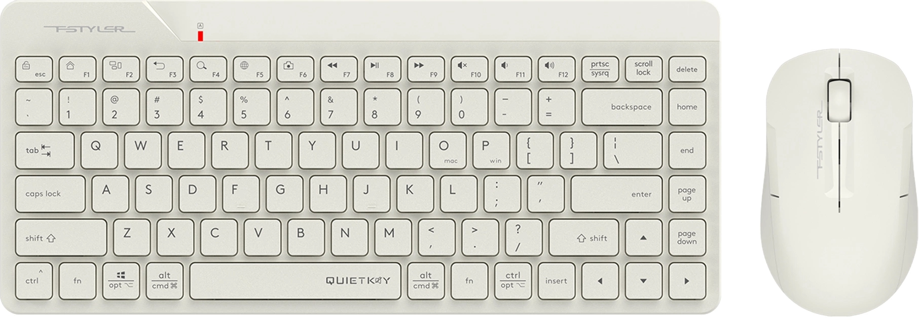 Бежевый комплект A4Tech FG2200 AIR2 лёгок и тих: клавиши мягко щёлкают, мышь точно реагирует, связь 2.4 GHz не рвётся даже через стены.