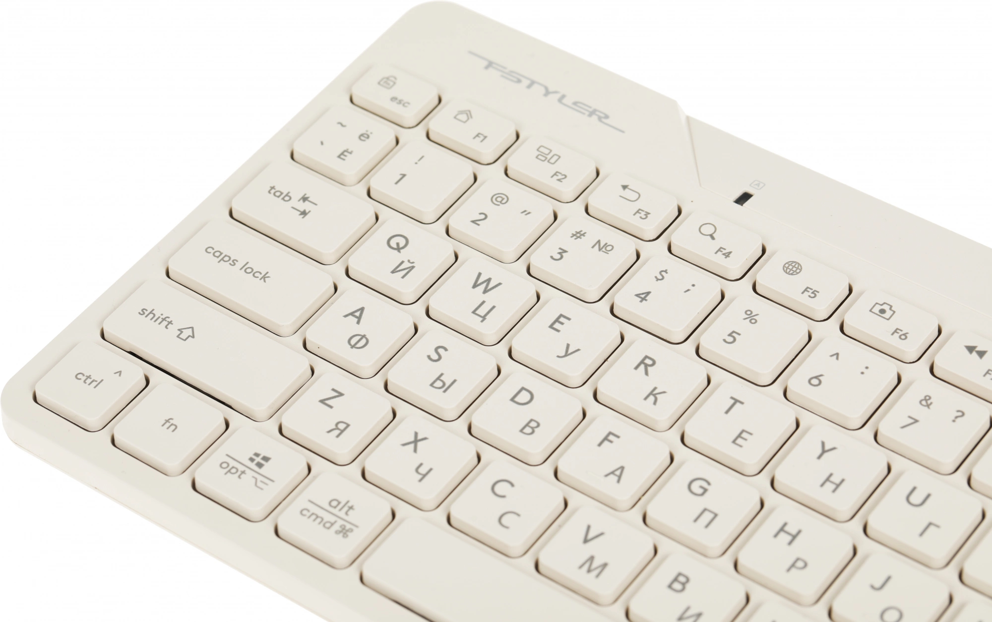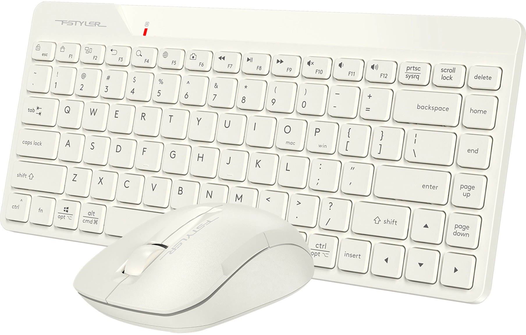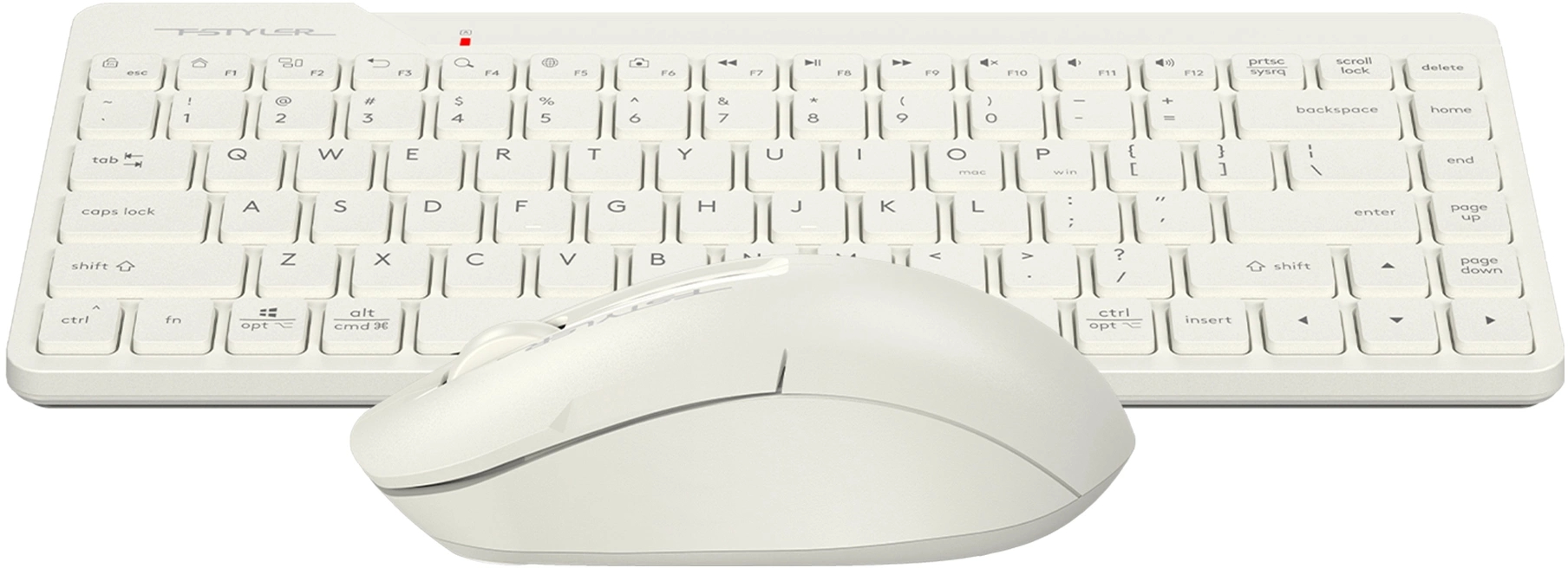 Бежевый комплект A4Tech FG2200 Air2 словно невесом: клавиатура с низким профилем не утомляет запястья, мышь скользит плавно, а связь бесперебойна до 10 м. Аккумулятора хватает надолго.