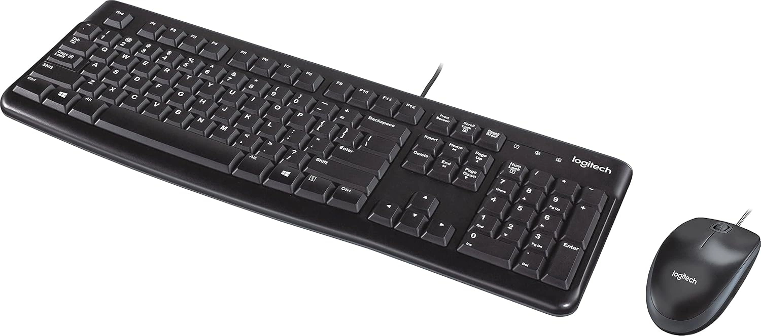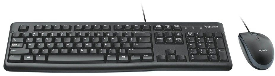 Logitech MK120 проводной комплект: клавиатура с удобными колпачками на клавишах и мышь 800 dpi. Простое подключение и эргономика делают его оптимальным для офисных ПК.