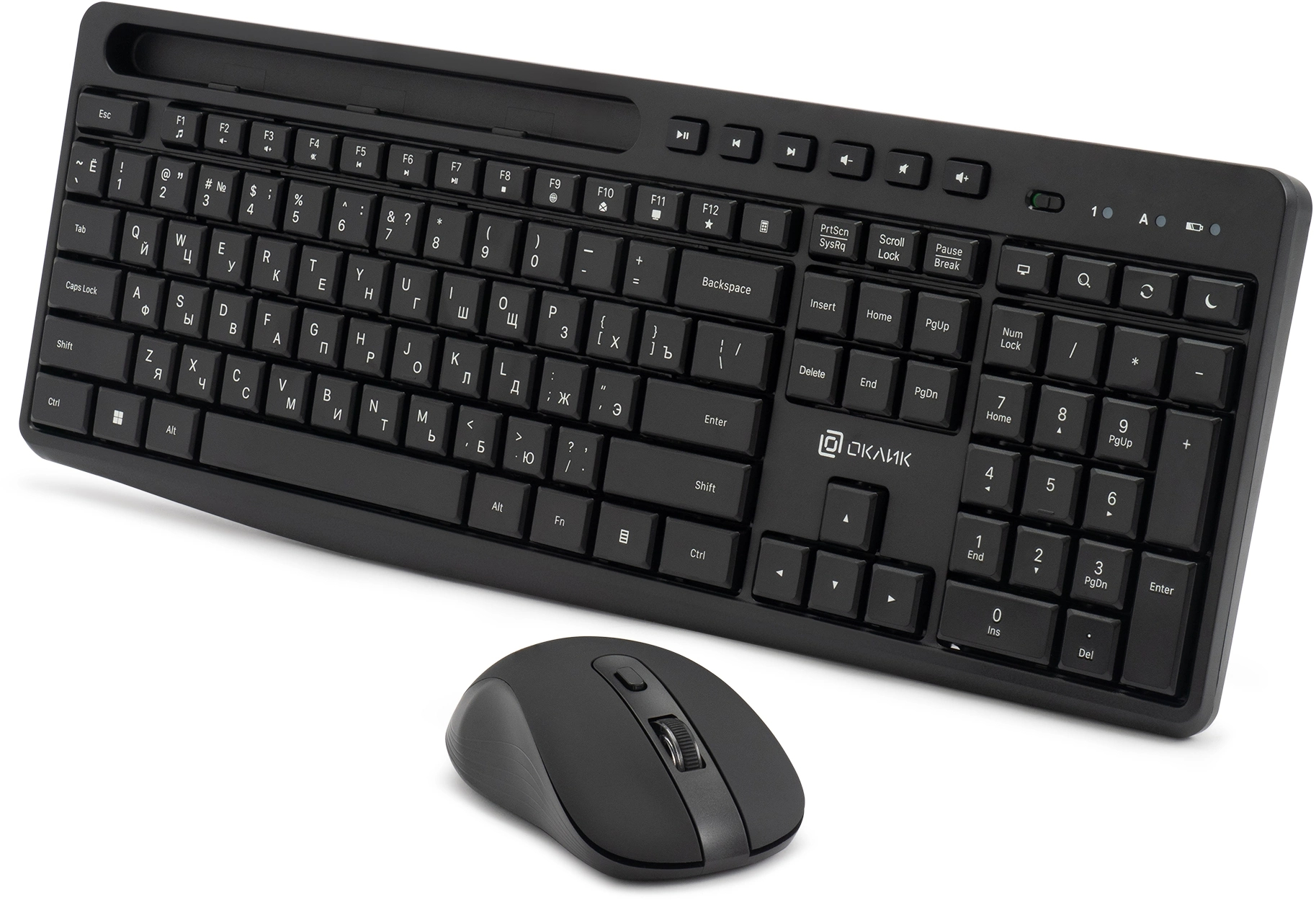 Комплект клавиатура/мышь OKLICK - S275W, Беспроводной, 10 метров, USB, Optical, 800 - 1600 dpi, 6 mouse btns, keyboard waterproof, num pad, чёрный, 1993113
