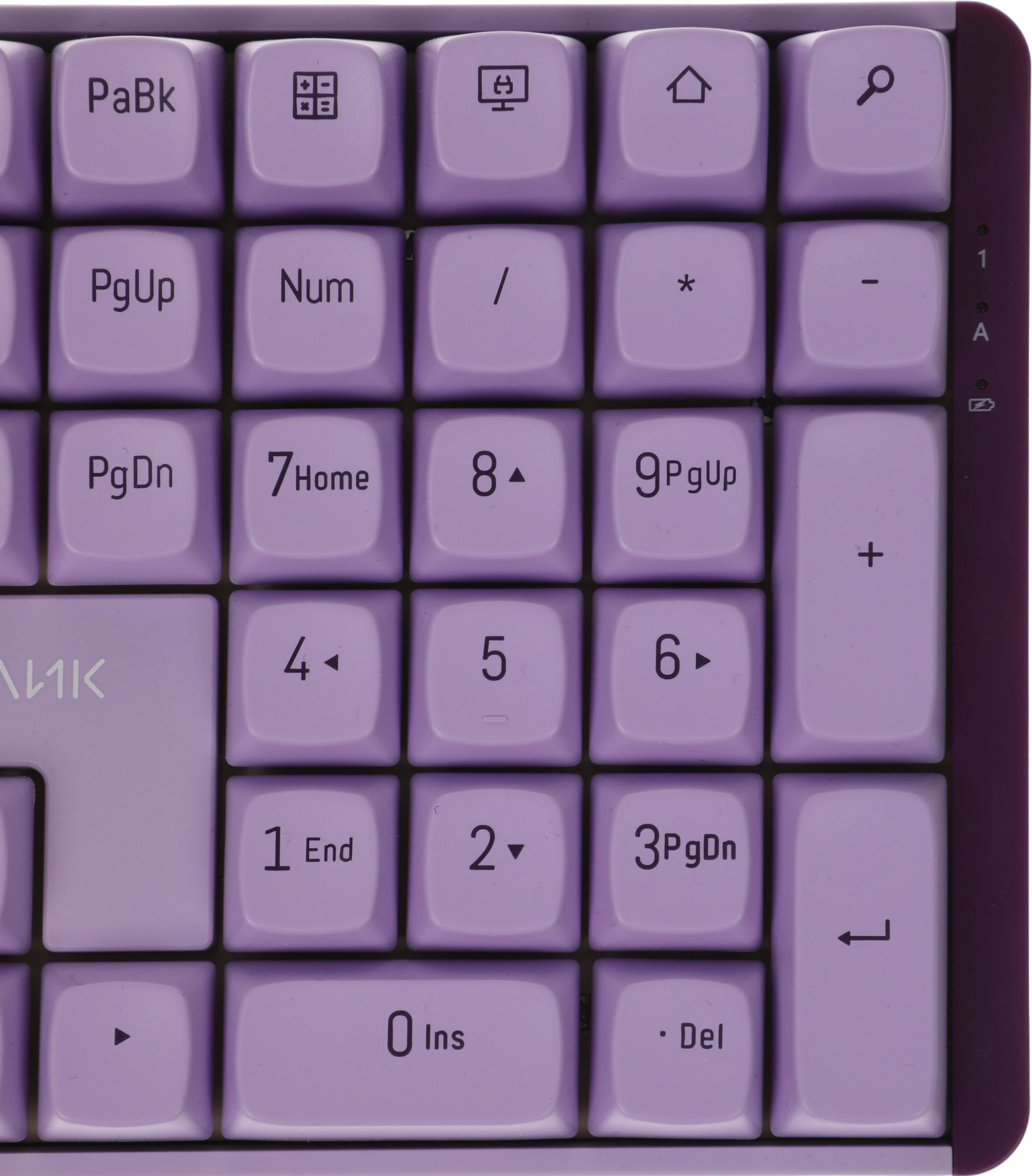Этот фиолетовый комплект вдохновляет: клавиши с мягким щелчком, а мышь с удобными кнопками под большой палец делают работу комфортной и даже игровой. Цвет насыщенный, не выгорает и подчёркивает индивидуальность рабочего места.