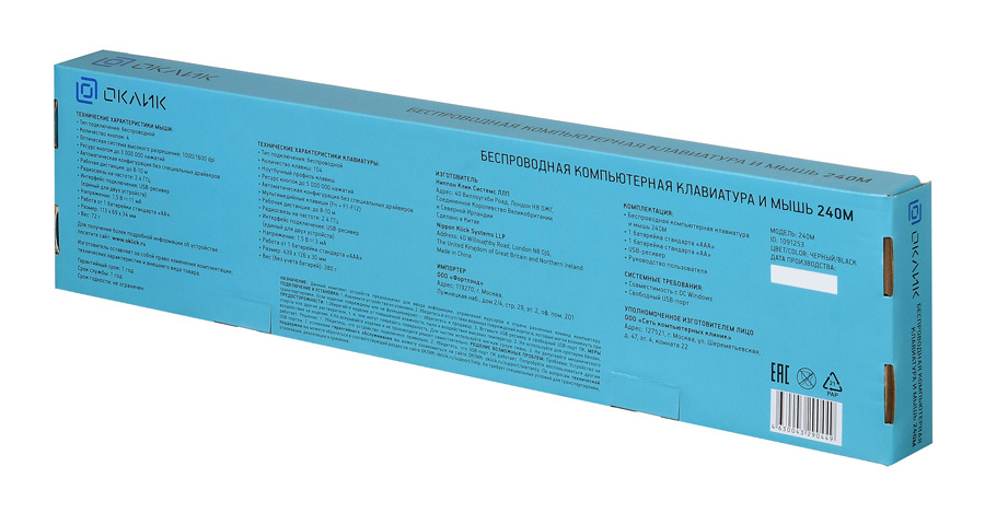 Выбрать товарыКомплект клавиатура/мышь OKLICK, Беспроводной, чёрный, 1091253