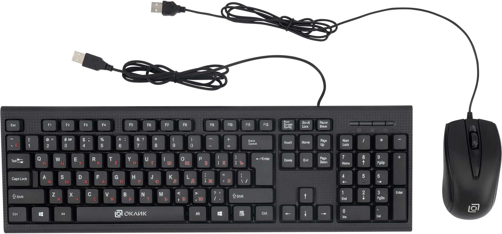 Выбрать товарыКомплект клавиатура/мышь OKLICK, Проводной, чёрный, 1091260